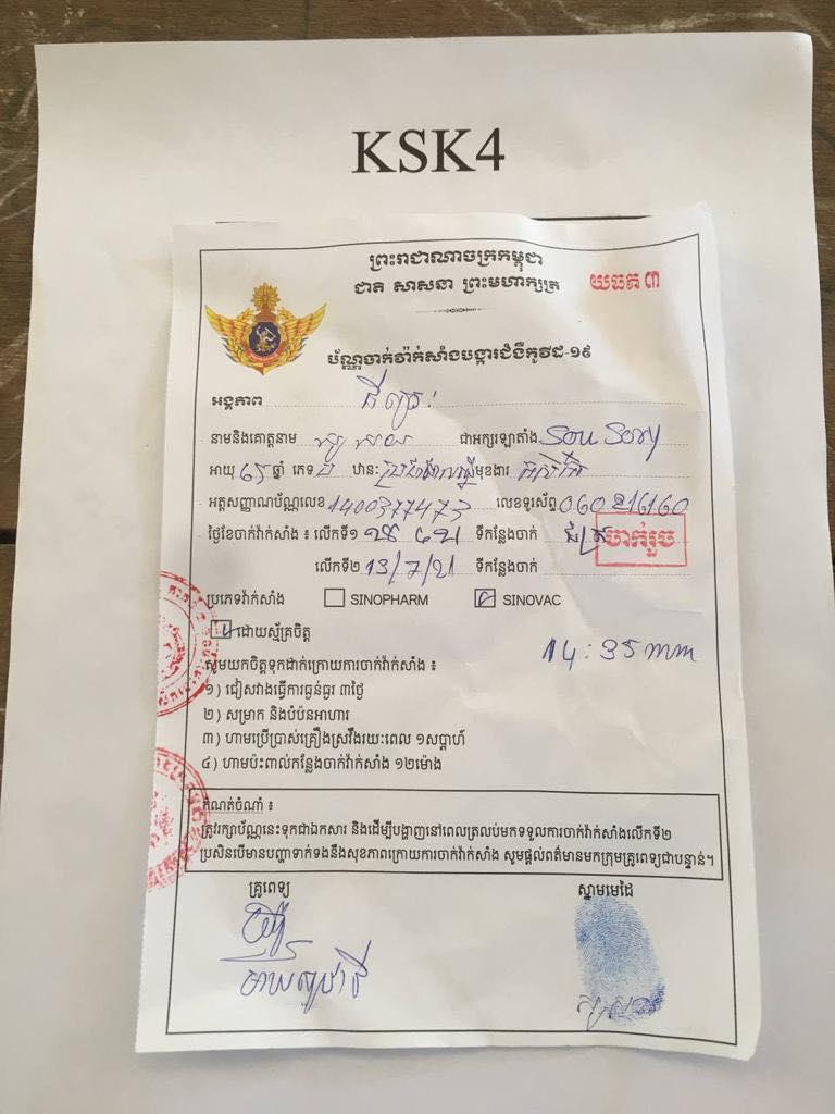 តាមរយៈហ្វេសបុកផ្លូវការ សម្តេចតេជោ ហ៊ុន សែនកាលពីថ្ងៃទី២៨ ខែមិថុនា ឆ្នាំ២០២១ បានលើកឡើងថា កាលពីថ្ងៃទី១៤ ខែមិថុនា ឆ្នាំ២០២១ យើងចាក់វ៉ាក់សាំងការពារកូវីដ១៩ បានដល់ចំនួន៣លាននាក់។ ថ្ងៃទី២៨ ខែមិថុនា ឆ្នាំ២០២១ យើងចាក់បានជាង៤លាននាក់ក្នុងចំណោមមនុស្ស១០លាននាក់ ដែលត្រូវចាក់ ក្នុងនោះយើងបានរកឃើញមនុស្សដែលទទួលដូសទី៤លាន គឺបានទៅប្អូនប្រុសឈ្មោះ សូ សយ អាយុ៦៥ឆ្នាំជាអតីតយុទ្ធជន និងជាយុទ្ធជនពិការជើងឆ្វេងដែលសព្វថ្ងៃ រស់នៅភូមិប្រទាល ឃុំអណ្តូងទឹក ស្រុកបុទុមសាគរ ខេត្តកោះកុង។