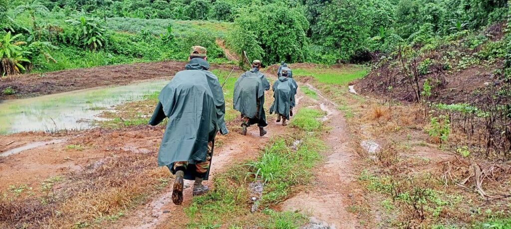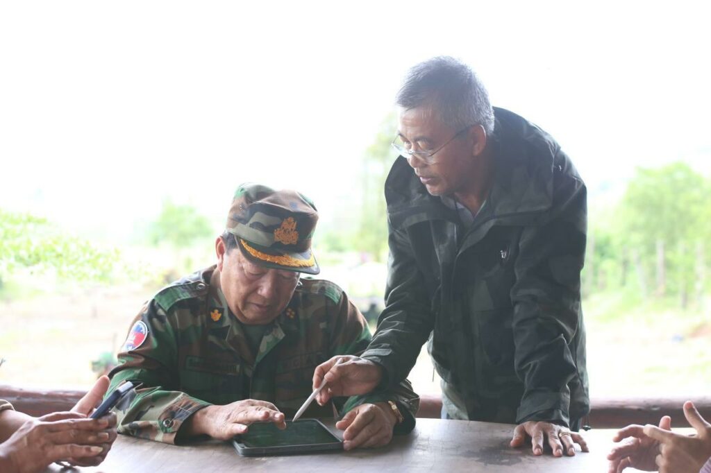 ឧបសគ្គទី២នេះ គឺភូមិសាស្ត្រ ឥឡូវនេះយើងបានរុញកម្លាំងថ្មើរជើង ចូលទៅដល់ជិត ភ្នំនេះ ហើយគឺនៅជើងភ្នំ និងចង្កេះភ្នំនោះ ប៉ុន្តែចង្កេះភ្នំហ្នឹងគឺវាខ្ពស់ជាង៥០០ ម៉ែត្រ..ប៉ុន្តែកម្ពស់ កំពូលភ្នំគឺវា១ពាន់២០០ម៉ែត្រជាង ទៅដល់១ពាន់៥០០ម៉ែត្រ..វាចោតតែម្តង ។ អញ្ចឹង គឺឥឡូវ នេះ នៅតាមនេះគឺដាក់ខ្សែពួរដើម្បីឡើង..ហើយយុទ្ធវិធីដែលយើង ទៅនេះ..បង ប្អូន អ្នកថ្មើរ ជើងទៅដល់កន្លែងណាគឺយើងបង្ហោះដ្រូនដែលតូច វិលមើលក្នុងរង្វង់ជាង៣គីឡូ ជុំវិញហ្នឹង.. ហើយបានបងប្អូនដើរទៅទៀត..ដើរទៅជាដំណាក់ៗដើម្បីScan យកភូមិសាស្ត្រ ទាំងអស់ ។ ប៉ុន្តែពេលខ្លះ ក្នុងមួយថ្ងៃបងប្អូន Scan ដ្រូននេះ បានតែ២០នាទីឬ៣០នាទីទេ ដោយសារវា ភ្លៀង ដូច្នេះដ្រូនហោះអត់កើត។ អញ្ចឹង នេះគឺជាបញ្ហាឧបសគ្គធំណាស់ ក្នុង ភូមិសាស្ត្រ ហើយនឹងធាតុអាកាសនេះ។