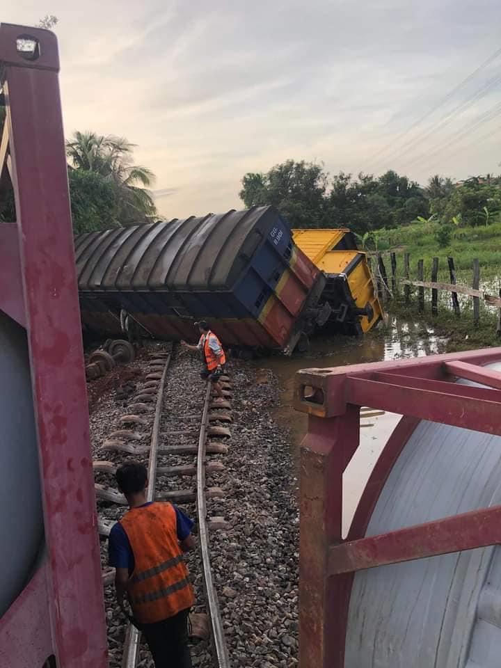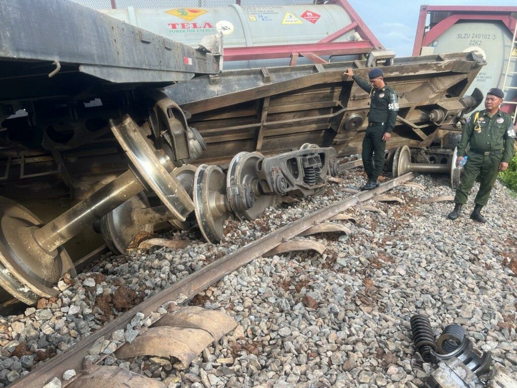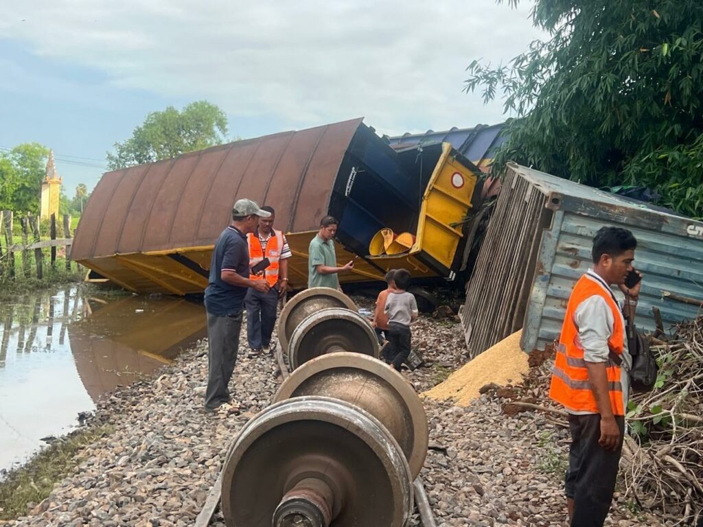 រថភ្លើងដាច់ចេញពីទូក្រឡាប់ធ្លាក់ផ្លូវដោយខ្លួនឯង នៅស្រុកក្រគរ ខេត្តពោធិ៍សាត់