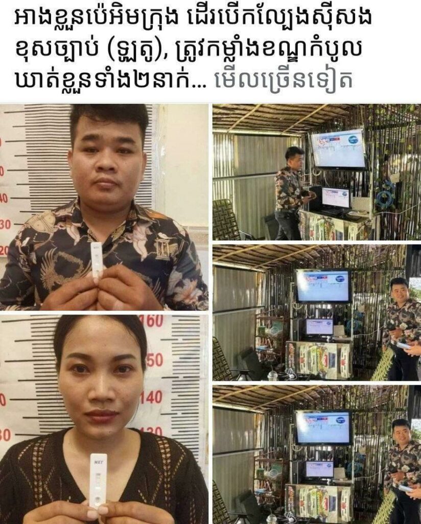 (ភ្នំពេញ)៖ តាមរយៈបណ្ដាញព័ត៌មាន Fresh News នៅថ្ងៃទី១១ ខែសីហា ឆ្នាំ២០២៤នេះ ឧត្តមសេនីយ៍ត្រី អេង ហ៊ី អ្នកនាំពាក្យកងរាជអាវុធហត្ថលើផ្ទៃប្រទេស បានបញ្ជាក់ថា ក្នុងរយៈពេល៣ថ្ងៃនេះ កងរាជអាវុធហត្ថ បានតាមដានដោយយកចិត្តទុកដាក់ពាក់ព័ន្ធនឹងព័ត៌មានដែលបានបង្ហោះផ្សព្វផ្សាយថា «អាងខ្លួនប៉េអឹមក្រុង ដើរបើកល្បែងស៊ីសងខុសច្បាប់ (ឡូតូ) ត្រូវកម្លាំងខណ្ឌកំបូលឃាត់ខ្លួនទាំង២នាក់»។
