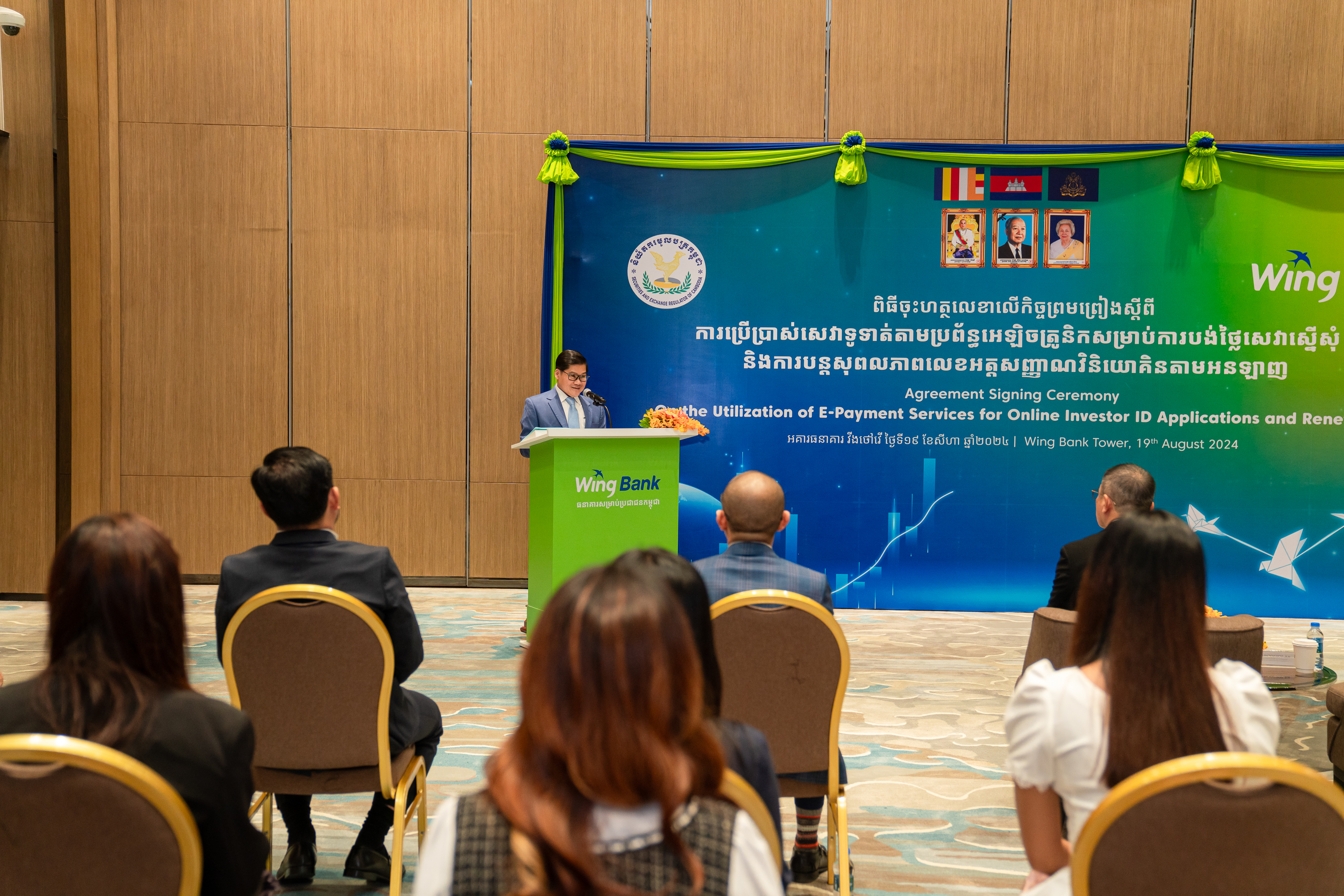 និយ័តករមូលបត្រកម្ពុជា និងធនាគារ វីង (ខេមបូឌា) ម.ក បានប្រកាសកិច្ចសហការ ដើម្បីជួយសម្រួលទៅដល់វិនិយោគិន ក្នុងការដាក់ស្នើ ក៏ដូច ជាបន្តសុពលភាពលេខអត្តសញ្ញាណ ដោយផ្តល់ជូននូវការប្រើប្រាស់សេវាទូទាត់តាមប្រព័ន្ធអេឡិចត្រូនិកដ៏រលូនតាមរយៈធនាគារ វីង។