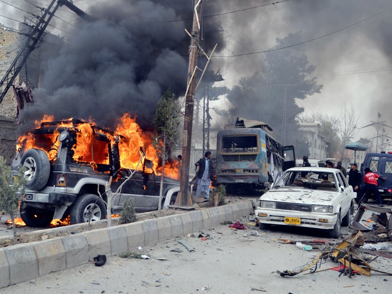 មន្រ្តីប៉ូលិសជាន់ខ្ពស់ លោក Manzoor Buledi បានប្រាប់ Reuters ថាប៉ូលិស ៧នាក់ស្ថិតក្នុងចំណោមអ្នករងរបួស នៅពេលគ្រាប់បែកបញ្ជាពីចម្ងាយដែលដាក់ភ្ជាប់ទៅនឹងម៉ូតូមួយគ្រឿងផ្ទុះឡើង នៅជិតទីស្នាក់ការប៉ូលិស ក្នុងទីក្រុង Pishin។ កុមារ ២នាក់បានដើរកាត់ទីតាំងកើតហេតុ ទើបត្រូវស្លាប់។