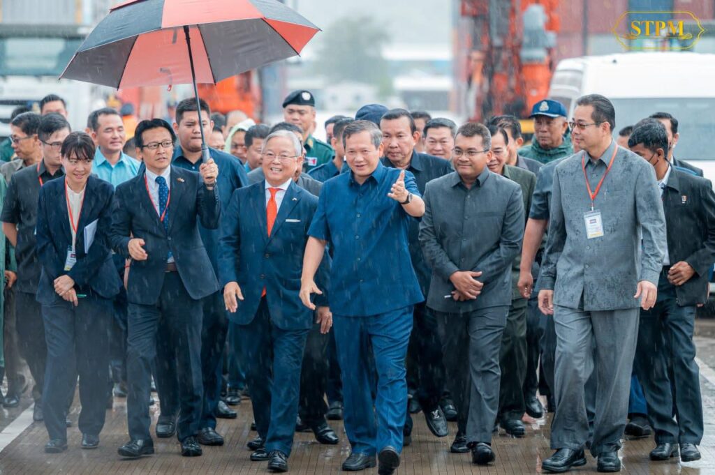 ពិធីសម្ពោធដាក់ឱ្យប្រើប្រាស់សមិទ្ធផលថ្មីដែលដើរតួនាទីសំខាន់សម្រាប់ការធ្វើពា​ណិជ្ជកម្មរបស់កម្ពុជា ប្រព្រឹត្តទៅក្រោមអធិបតីភាពដ៏ខ្ពង់ខ្ពស់របស់សម្តេច​មហា​បវរ​ធិបតី ហ៊ុន ម៉ាណែត នាយករដ្ឋមន្ត្រីកម្ពុជា និងលោក អ៊ូអិណុ អាត់​ស៊ូ​ស៊ី ឯកអគ្គរាជទូតជប៉ុន ប្រចាំនៅកម្ពុជា។