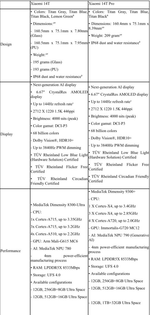 Xiaomi 14T Pro ភ្ជាប់មកជាមួយជម្រើសផ្ទុកទិន្នន័យចំនួន2 ដែលមានតម្លៃចាប់ពី 629 ដុល្លារ។