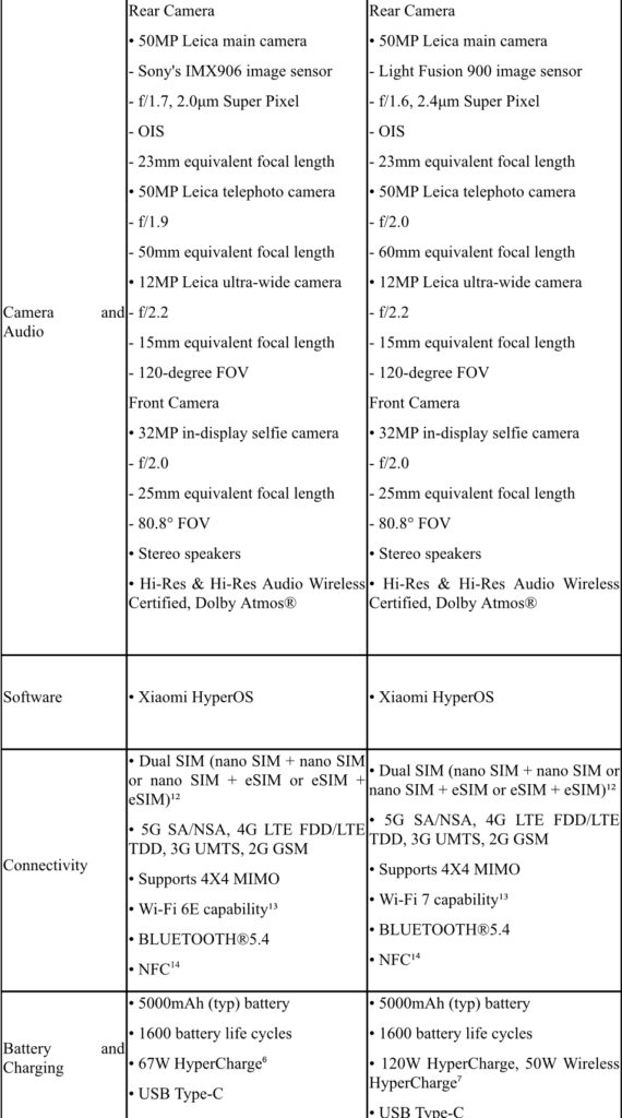 15 ដូចគ្នាជាមួយ Xiaomi Pad 6S Pro 12.4, Xiaomi Pad 6, Xiaomi 14, Xiaomi 14 Ultra និង Xiaomi 14T និង Xiaomi 14T Pro ។