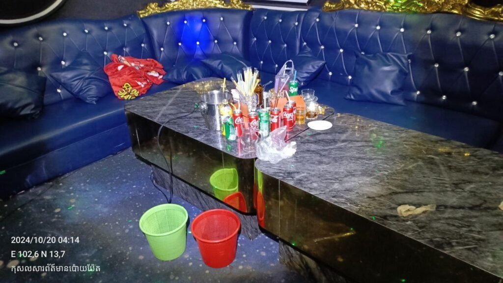 (បន្ទាយមានជ័យ)៖ កម្លាំងនគរបាលក្រុងប៉ោយប៉ែត បានឆ្មក់ចូលបង្ក្រាបទីតាំងខារ៉ាអូខេយីហោ ហូលីវូត និងឃាត់បានមនុស្ស៤នាក់ ប្រើប្រាស់សារធាតុខុសច្បាប់ នៅក្នុងបន្ទប់ខារ៉ាអូខេខាងលើ នៅយប់រំលងអាធាត្រឈានចូលថ្ងៃទី២០ ខែតុលា ឆ្នាំ២០២៤ នៅទីតាំងKTV B9 ចាស់ ប្តូរយីហោ ហូលីវូត ក្នុងភូមិក្បាលស្ពានមួយ សង្កាត់អូរជ្រៅ ក្រុងប៉ោយប៉ែត ខេត្តបន្ទាយមានជ័យ។