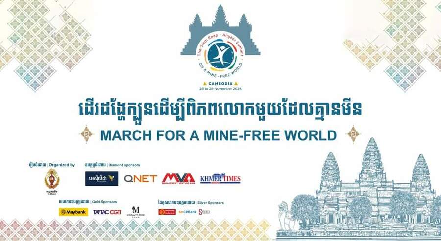 (ភ្នំពេញ)៖ ក្នុងឋានៈកម្ពុជាជាម្ចាស់ផ្ទះរៀបចំកិច្ចប្រជុំត្រួតពិនិត្យឡើងវិញលើកទី៥ នៃអនុសញ្ញាហាមប្រាមការប្រើប្រាស់មីនប្រឆាំងមនុស្ស(អនុសញ្ញាអូតាវ៉ា) ឬកិច្ចប្រជុំកំពូលសៀមរាប-អង្គរ ស្តីពីពិភពលោកមួយដែលគ្មានមីន ដែលនឹងប្រព្រឹត្តិទៅនៅខេត្តសៀមរាប ចាប់ពីថ្ងៃទី២៥-២៩ ខែវិច្ឆិកា ឆ្នាំ២០២៤ នាពេលខាងមុខដ៏ខ្លី កម្ពុជានឹងរៀបចំព្រឹត្តិការណ៍ពិសេសៗមួយចំនួន ក្នុងនោះមាន «ដើរដង្ហែក្បួនដើម្បីពិភពលោកមួយដែលគ្មានមីន March For A Mine-Free World» នាព្រឹកថ្ងៃទី២៤ ខែវិច្ឆិកា ឆ្នាំ២០២៤ ដោយចេញដំណើរចាប់ពីមុខប្រាសាទអង្គរវត្ត ទៅដល់ទីលានជល់ដំរី ក្នុងរយៈចម្ងាយ៤ គីឡូម៉ែត។