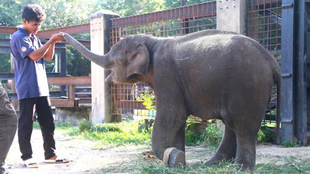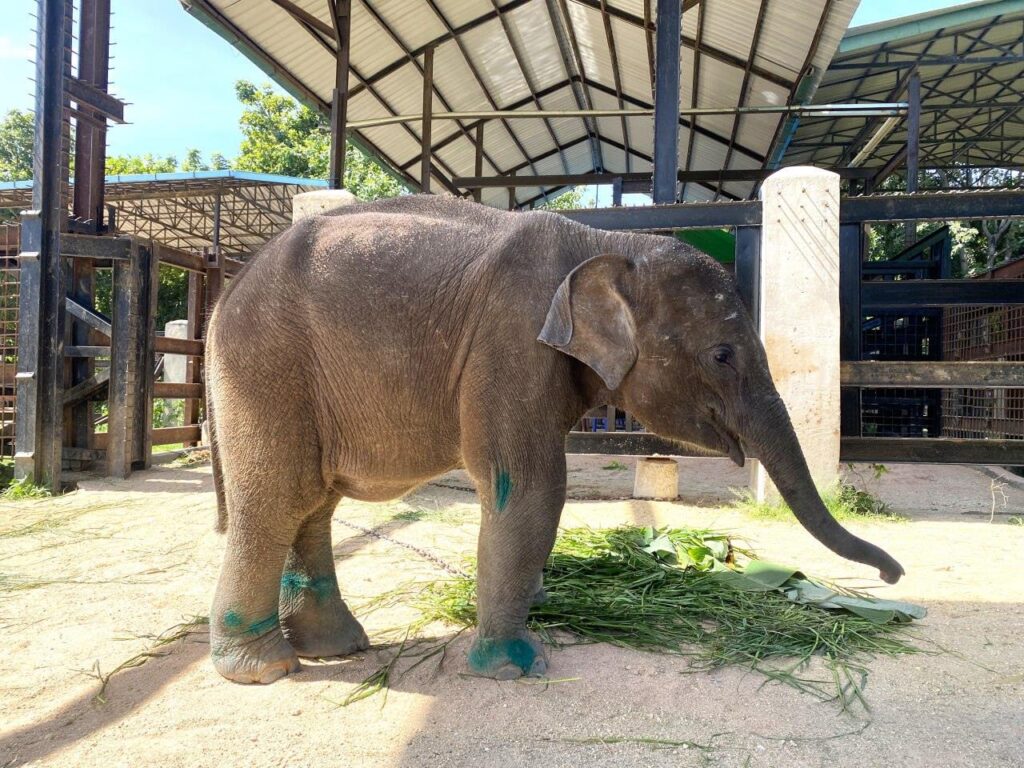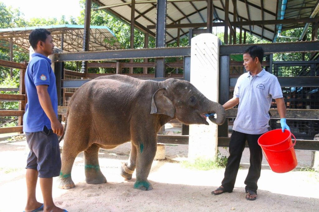 កូនដំរីដែលជួយសង្គ្រោះពីការវង្វេងហ្វូងនៅខេត្តមណ្ឌលគិរី វិវដ្តមកភាពល្អប្រសើរហើយ និងកំពុងស្ថិតនៅក្រោមការថែទាំសុខភាព នៅសួនសត្វភ្នំតាម៉ៅ