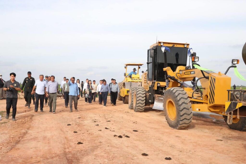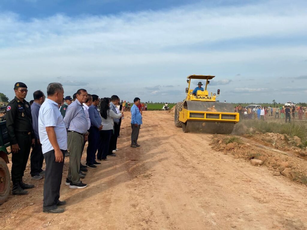 (កំពង់ធំ)៖ ដោយប្រើប្រាស់ក្រុមគ្រឿងចក្រសម្តេចបវរធិបតី រៀបចំឡើងដោយលោក វង្សី វិស្សុត ឧបនាយករដ្ឋមន្រ្តីប្រចាំការ និងជាប្រធានក្រុមការងារចុះមូលដ្ឋានខេត្តកំពង់ធំ លោកបណ្ឌិត ថោង ខុន ទេសរដ្ឋមន្រ្តី សមាជិកគណៈកម្មាធិការកណ្តាល អនុប្រធានទី១ក្រុមការងារគណបក្សចុះមូលដ្ឋានខេត្តកំពង់ធំ និងជាប្រធានក្រុមការងារគណបក្សចុះមូលដ្ឋានស្រុកតាំងគោក នារសៀលថ្ងៃទី២១ ខែធ្នូ ឆ្នាំ២០២៤នេះ បានអញ្ជើញជាអធិបតីបើកការដ្ឋានជួសជុលផ្លូវលំមួយខ្សែ ប្រវែង ១៦គីឡូម៉ែត្រ ចេញពីកោះរះ ទៅភូមិគោកត្របែក ឃុំស្រឡៅ ស្រុកតាំងគោក ស្របទៅតាមការសំណូម ពររបស់ប្រជាពលរដ្ឋ។