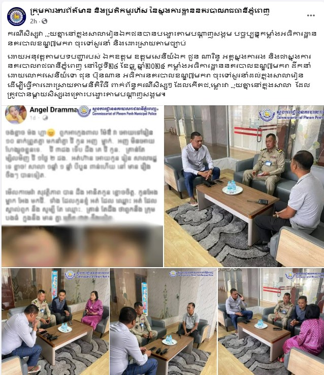 លោកឧត្តមសេនីយ៍ស្នងការ បានបញ្ជាក់ថា នគរបាលរបស់យើងបានហៅឪពុកម្តាយសងខាង មកដោះស្រាយ និងសម្របសម្រួលដើម្បីបញ្ចប់រឿងនៅក្នុងសាលាតែម្តង៕ ផ្តល់សិទ្ធិដោយ៖ Fresh News
