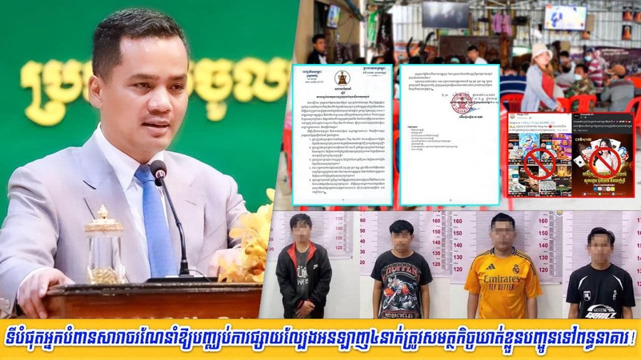 ទីបំផុតអ្នកបំពានសារាចរណែនាំឱ្យបញ្ឈប់ការផ្សាយល្បែ-ងអន-ឡាញ ៤នាក់ ត្រូវសមត្ថកិច្ចឃាត់ខ្លួនបញ្ជូនទៅពន្ធនាគារ