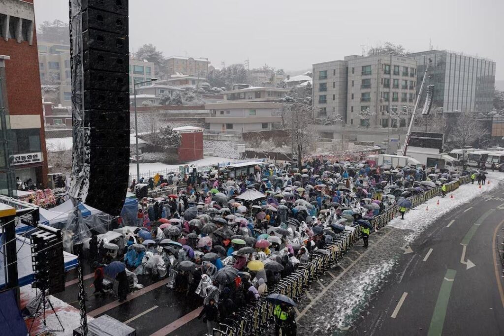 ខណៈដីកាចាប់ខ្លួនលោក Yoon ក្រោមបទចោទប្រកាន់បះបោរជុំវិញការប្រកាសប្រើច្បាប់អាជ្ញាសឹកកាលពីថ្ងៃទី៣ ខែធ្នូកន្លងទៅ នឹងត្រូវអស់សុពលភាពនៅពាក់កណ្ដាលយប់ថ្ងៃអាទិត្យ ឈានចូល ថ្ងៃចន្ទស្អែកនេះ មនុស្សជាច្រើនក្រុមបានប្រមូលផ្ដុំគ្នានៅក្បែរនិវេសនដ្ឋានរបស់លោក Yoon ក្នុងនោះមានក្រុមខ្លះជំរុញឱ្យមានការចាប់ខ្លួន និងខ្លះទៀតបានប្រឆាំងនឹងការចាប់ខ្លួនប្រធានាធិបតី ត្រូវបានព្យួរតំណែងរូបនេះ។