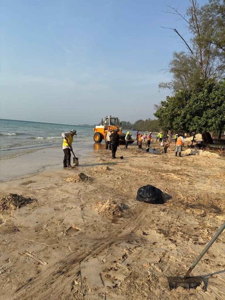 ក្រសួងបរិស្ថាន ក្រសួងរ៉ែ និងថាមពល និងសមត្ថកិច្ចពាក់ព័ន្ធបានសម្អាតប្រេង ដែលអណ្តែតមកលើឆ្នេរព្រែកត្រែង ក្នុងខេត្តព្រះសីហនុ ឱ្យប្រសើរឡើងវិញនៅពេលឆាប់ៗ