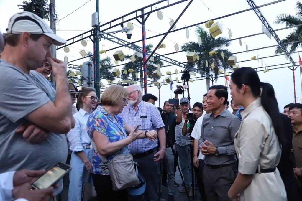 (ភ្នំពេញ)៖ ក្នុងពេលចុះពិនិត្យដំណើរការសាកល្បងនៃគម្រោងផ្លូវថ្មើរជើង (Walk Street) នាល្ងាចថ្ងៃទី១ ខែកុម្ភៈ ឆ្នាំ២០២៥នេះ លោក ឃួង ស្រេង អភិបាលរាជធានីភ្នំពេញ បានបញ្ជាក់ថា នៅតាមផ្លូវថ្មើរជើងដែលទើបបើកដំណើរថ្មីនេះ រដ្ឋបាលរាជធានីភ្នំពេញក៏មានគម្រោងរៀបចំឱ្យមានស្តង់ម្ហូបអាហារ ការប្រគំតន្ត្រីសម័យ-បុរាណ រោងគូរគំនូរ កន្លែងលេងសៀករហ័សកម្មផ្សេងៗ ដើម្បីញ៉ាំងឱ្យការទស្សនារបស់ភ្ញៀវទេសចរកាន់តែសម្បូរបែប។