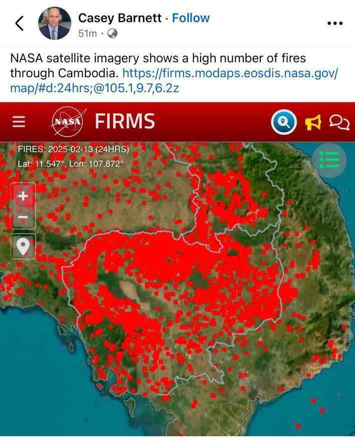 (ភ្នំពេញ)៖ ក្នុងរយៈពេលប៉ុន្មានថ្ងៃចុងក្រោយនេះ ក្រសួងបរិស្ថានបានកត់សម្គាល់ ឃើញមានការផ្សព្វផ្សាយដោយវេបសាយឧតុនិយមណាមួយនោះ និងការចែករំលែកនូវព័ត៌មានអំពីករណីភ្លើងឆេះ hotspot ដោយយកផែនទីមាត្រដ្ឋានតូច មិនអាចកំណត់បានថាជាកន្លែងណាមួយឱ្យច្បាស់លាស់នោះទេ ហើយព័ត៌មាននិងរូបភាពមិនពិតនេះ បានថតចម្លងតគ្នា ធ្វើឱ្យមានការភាន់ច្រឡំនូវការពិតជាក់ស្ដែង កំពុងកើតមាននៅប្រទេសកម្ពុជា ព្រោះឃើញថាហាក់បីដូចជាកម្ពុជាទាំងមូល ត្រូវបានឆេះក្រហមឆ្អៅ។