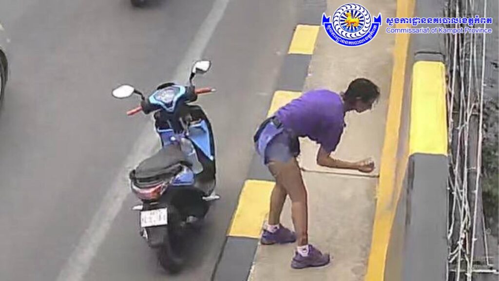 ស្ត្រីជនជាតិបរទេសដែលបាញ់ថ្នាំពណ៌នៅលើបង្កាន់ដៃស្ពានព្រែកកំពង់បាយ ត្រូវបានអធិការក្រុងកំពតស្រាវជ្រាវរកឃើញហើយ