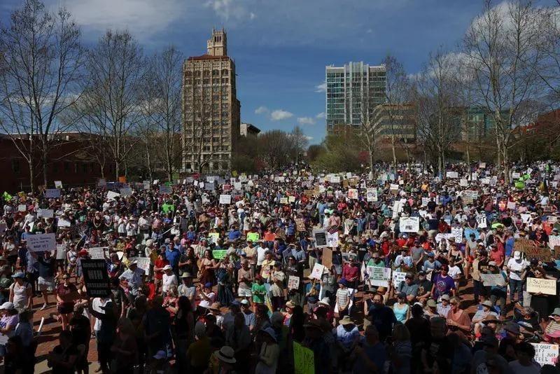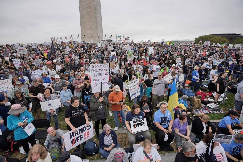 (វ៉ាស៉ីនតោន)៖ កាលពីថ្ងៃសៅរ៍ ទី៥ ខែមេសា ប្រជាជនអាមេរិកខ្ទង់ម៉ឺននាក់ បាននាំគ្នាធ្វើបាតុកម្មនៅតាមទីក្រុងធំៗ ទូទាំងសហរដ្ឋអាមេរិក ដើម្បីសម្តែងការតវ៉ាប្រឆាំងនឹង គោលនយោបាយដ៏ចម្រូងចម្រាស របស់ប្រធានាធិបតី លោក ដូណាល់ ត្រាំ ខណៈវាគឺជាសកម្មភាពបាតុកម្មធំបំផុត គិតចាប់តាំងពីរូបលោក បានត្រឡប់មកកាន់អំណាចសាជាថ្មី កាលពីខែមករា។ នេះបើតាមការចេញផ្សាយដោយ ទីភ្នាក់ងារព័ត៌មាន AFP។