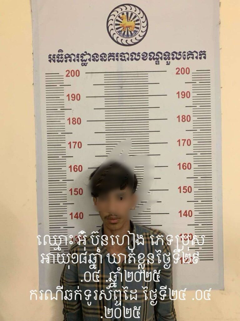 * ករណីទី១៖ អំពើលួចមានស្ថានទម្ងន់ទោស ដោយសារការប្រព្រឹត្តអំពើហិង្សា (ឆក់ទូរសព្ទ័ដៃម៉ាកអាយហ្វូន១៣ប្រូម៉េក បណ្តាលឲ្យជនរងគ្រោះដួលម៉ូតូរងរបួស) ប្រព្រឹត្តនៅចំណុចមុខ សាលាវេស្ទើនអន្តរជាតិ ផ្លូវលេខ៣១៥ សង្កាត់បឹងកក់១ ខណ្ឌទួលគោក រាជធានីភ្នំពេញ កាលពីថ្ងៃទី១៨ ខែមេសា ឆ្នាំ២០២៥ វេលាម៉ោង០៨៖១០នាទី។