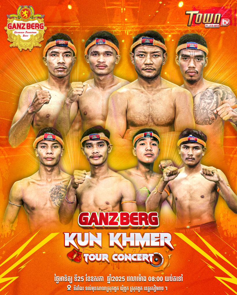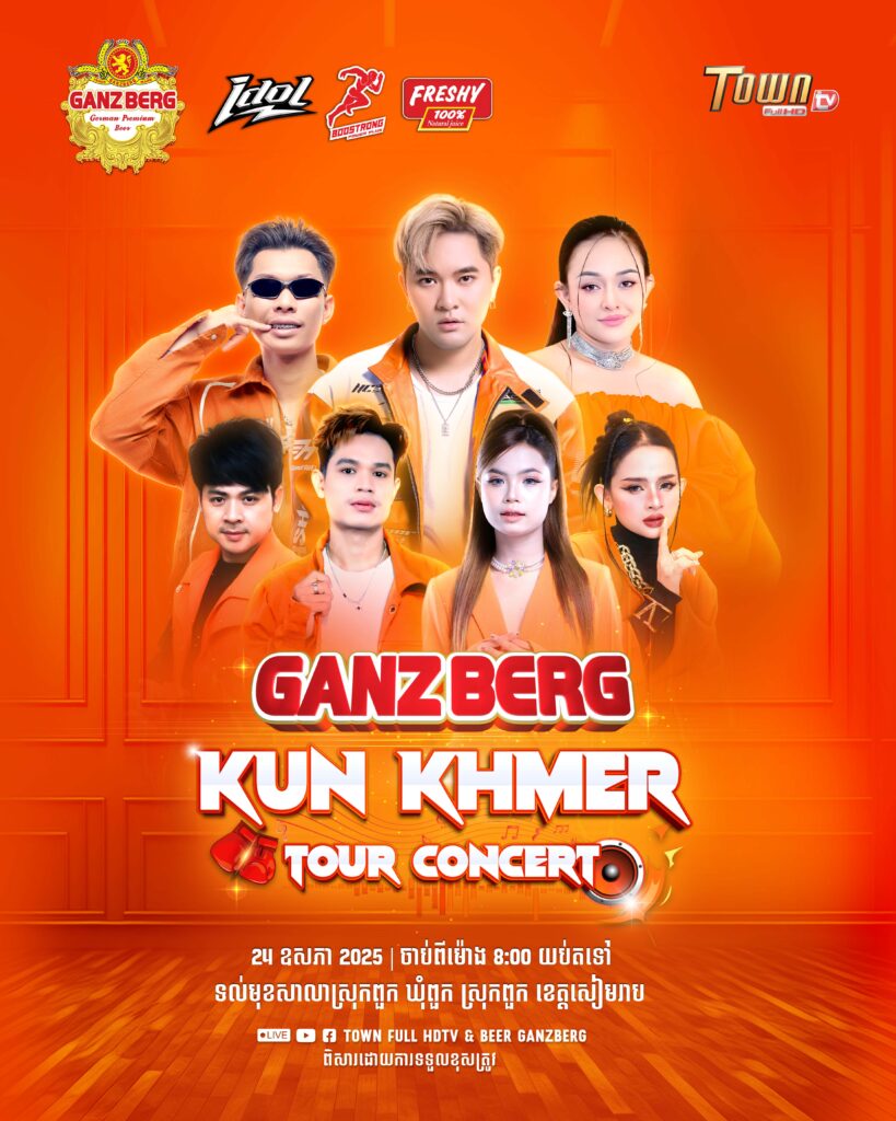 ហើយនៅសប្តាហ៍នេះ ថ្ងៃទី 24-25 ឧសភា GANZBERG Kun Khmer Tour Concert នឹងធ្វើដំណើរទៅកាន់ស្រុកពួកខេត្តសៀមរាប ជាមួយវត្តមានកំពូលតារាចម្រៀងល្បីៗ ជាច្រើនរូបដូចជា លោក Zedes លោកសុគន្ធថេរ៉ាយុ កញ្ញាស៊ីរីកា លោកHan Record និងកញ្ញា Bee Emm ពិសេសការប្រកួតប្រដាល់គុនខ្មែរជាមួយជំនួបកីឡាករទាំងជាតិនិងអន្តរជាតិជាច្រើនគូទៀតផង។