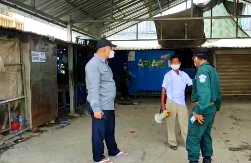 (កណ្ដាល)៖ លោក យី វណ្ណដា អធិការក្រុងតាខ្មៅ នៅព្រឹកថ្ងៃទី១៩ ខែមេសា ឆ្នាំ២០២១នេះ បានដឹកនាំកម្លាំងចុះធ្វើការអប់រំណែនាំ និងព្រមានចាត់វិធានការផ្លូវច្បាប់ ចំពោះក្រុមអាជីវករលក់បន្លែ ៥តូប ដែលលួចលាក់បើកលក់ល្មើសនឹងបម្រាមរបស់រដ្ឋបាលខេត្ត ដែលបានបិទផ្សារទាំងអស់នៅក្រុងតាខ្មៅ។