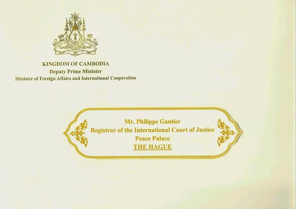 ថ្ងៃនេះ ទី ១៥ មិថុនា ឆ្នាំ២០២៥ រាជរដ្ឋាភិបាលកម្ពុជាបានបញ្ជូនលិខិតជាផ្លូវការទៅកាន់តុលាការយុត្តិធម៌អន្តរជាតិ (ICJ) ដើម្បីជួយស្វែងរកដំណោះស្រាយពាក់ព័ន្ធទៅនឹងបញ្ហាវិវាទព្រំដែននៅតំបន់ប្រាសាទតាមាន់ធំ ប្រាសាទតាមាន់តូច ប្រាសាទតាក្របី និងតំបន់មុំបី។