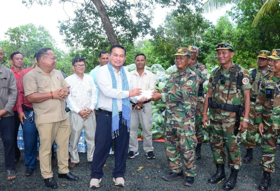 ទីប្រឹក្សាសម្ដេចតេជោ នាំយកបន្លែ៣០តោន គ្រឿងទេស សម្ភារផ្ទះបាយ និងថវិកាមួយចំនួន ផ្តល់ដល់កងទ័ពជួរមុខ