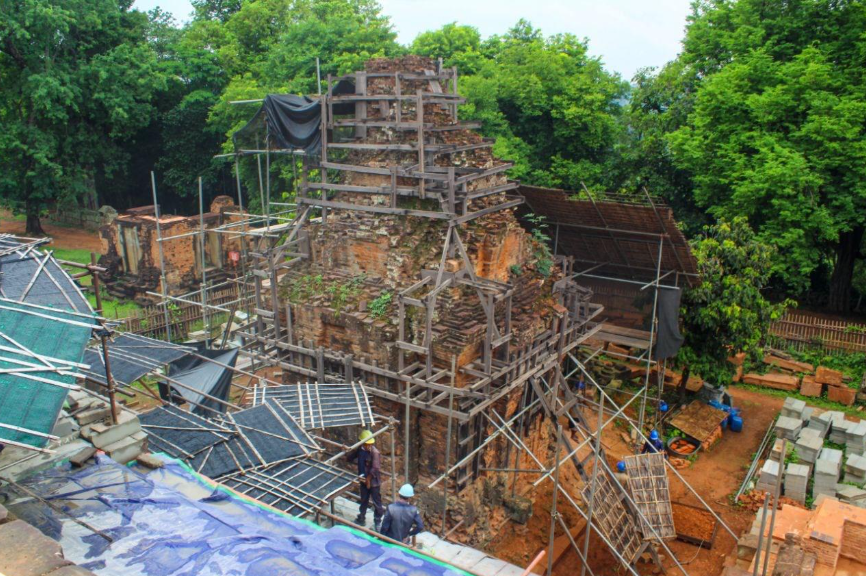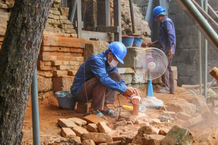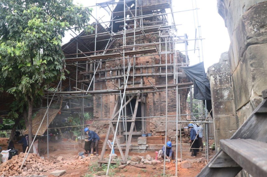 អាជ្ញាធរជាតិអប្សរា ជួសជុលពង្រឹងតួប៉មលេខ១៣នៃប្រាសាទឥដ្ឋ លើភ្នំបាខែង