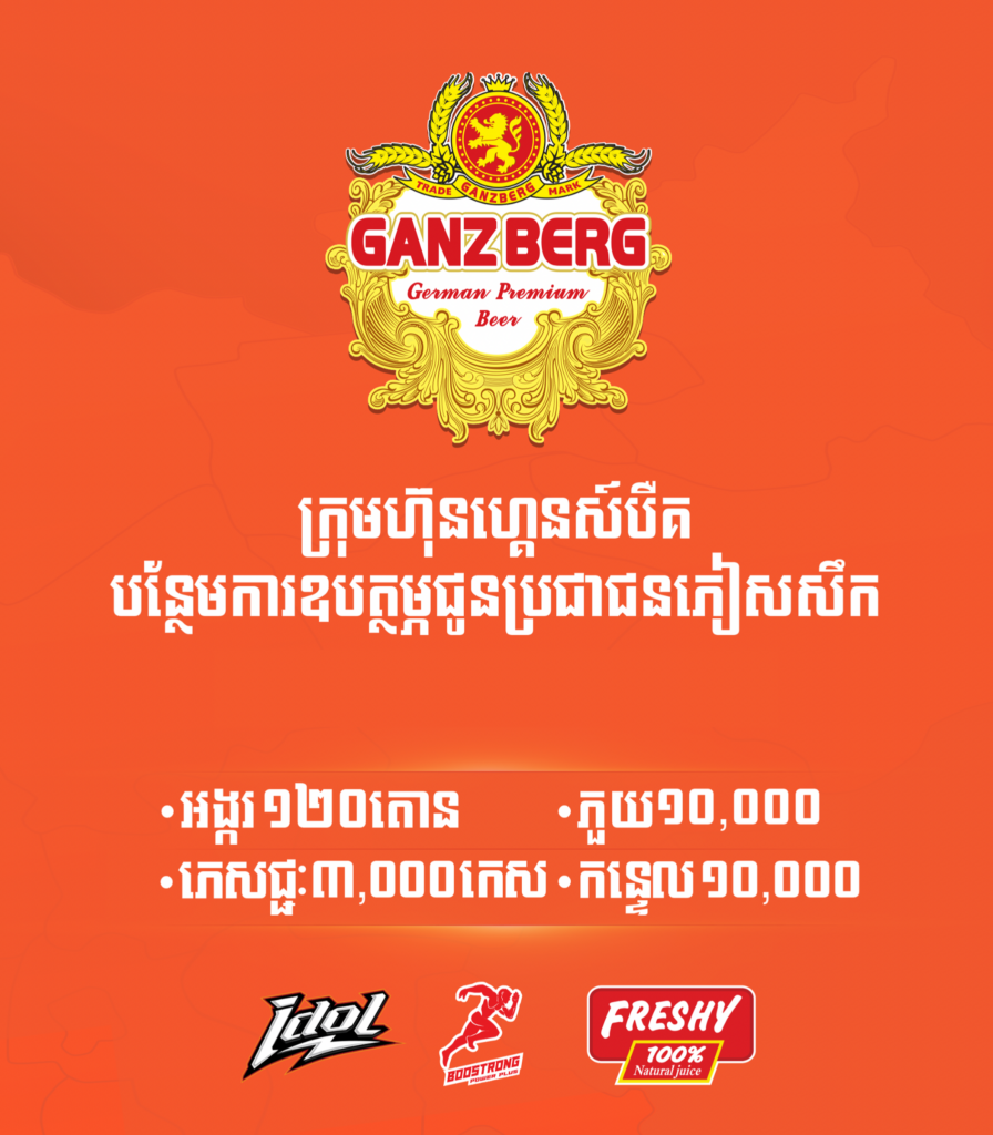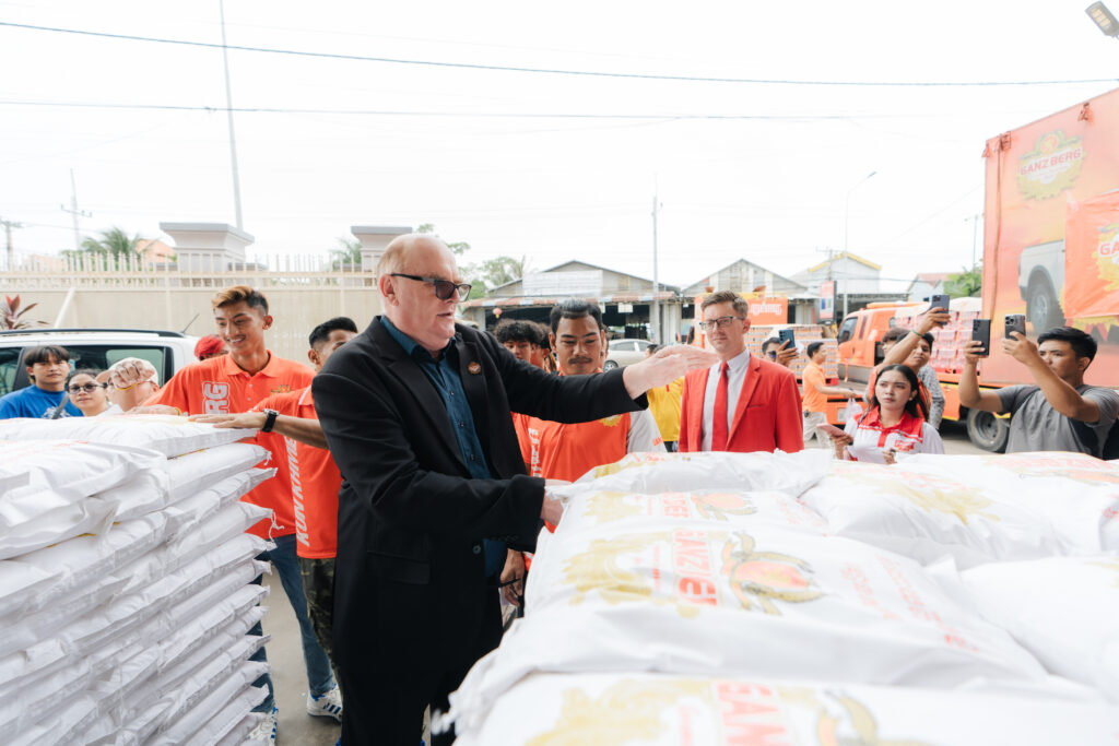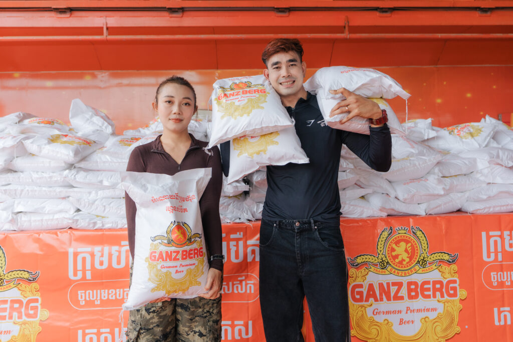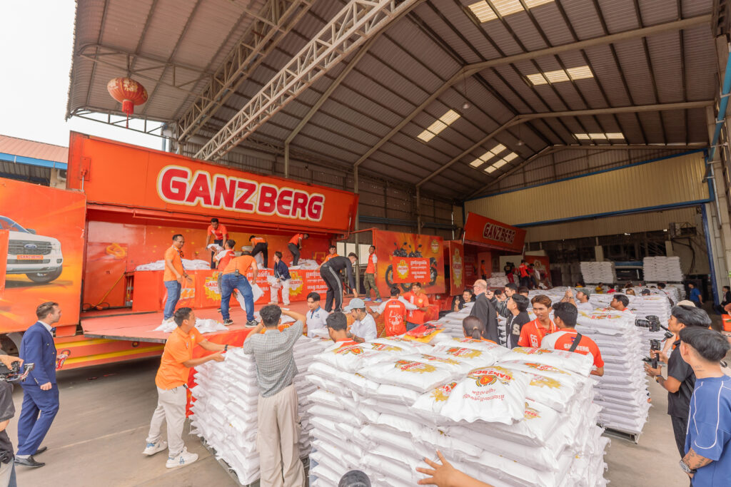 កាលពីម្សិលមិញក្រុមហ៊ុន GANZBERG ចូលរួមឧបត្ថម្ភអង្ករ 100 តោន និងភេសជ្ជៈ 3000 កេស ជូនប្រជាជនភៀសសឹក