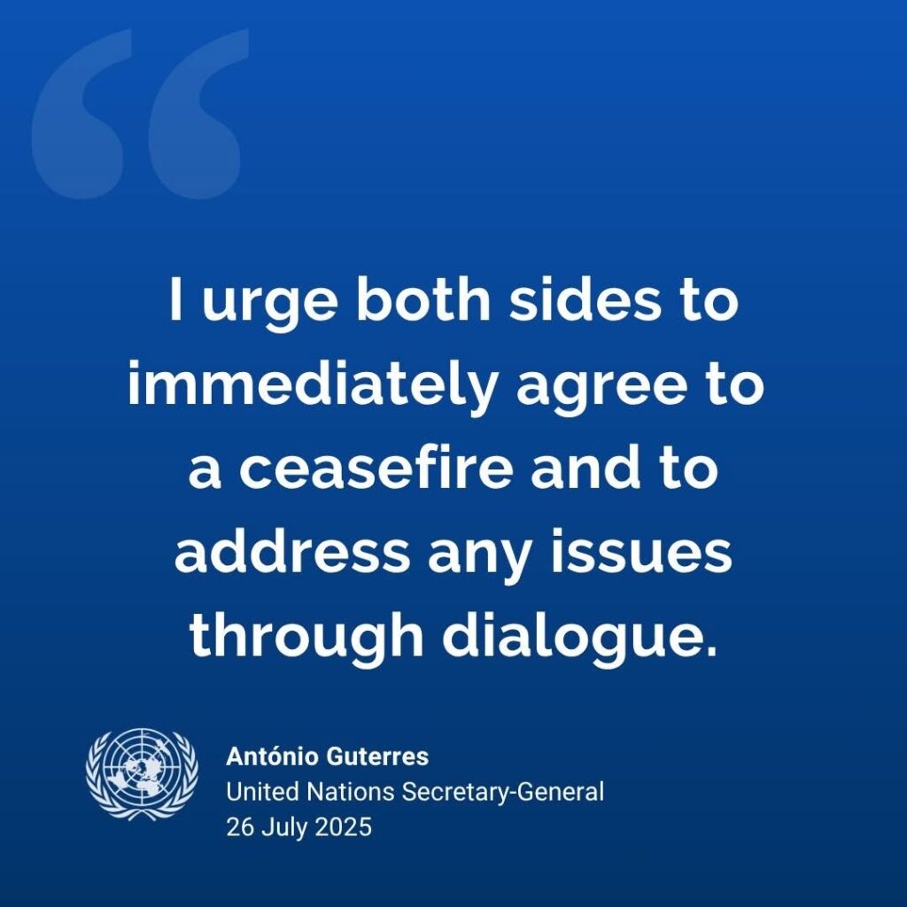 លោក ជុំ សុន្ទរី បានបញ្ជាក់ដឹងថា អគ្គលេខាធិការ អង្គការសហប្រជាជាតិ បានអំពាវនាវឱ្យមានកិច្ចឈប់បាញ់រវាងកម្ពុជា-ថៃ និងដោះស្រាយគ្នាដោយសន្តិវិធី៕ ផ្ដល់សិទ្ធិដោយ៖ Fresh News