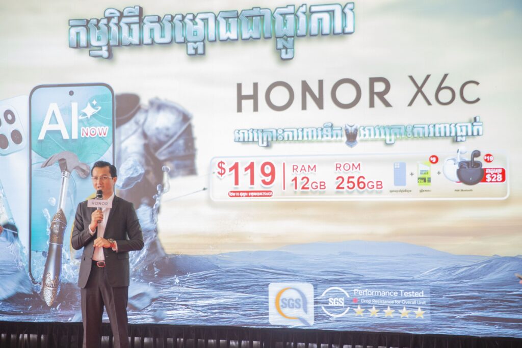 អតិថិជនអាចរកជាវ HONOR X6c ក្នុងតម្លៃត្រឹមតែ 119$ ថែមកាដូសរុប 28$ រួមមាន កាសប្លូធូ ខេស និងស្រ្គីនការពារ នៅតាមបណ្តាហាងលក់ទូរសព្ទនានាទូទាំងប្រទេស!