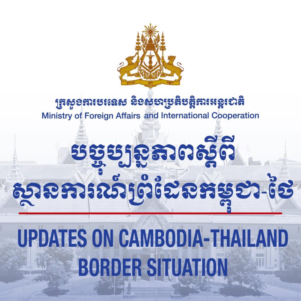 ក្រសួងការបរទេសកម្ពុជា ចេញប្រកាសព័ត៌មានអំពីកំណត់ហេតុព្រឹត្តិការណ៍ និងសកម្មភាពនានា ជុំវិញការវិវត្តថ្មីៗនៃសភាពការណ៍ព្រំដែនកម្ពុជា-ថៃ