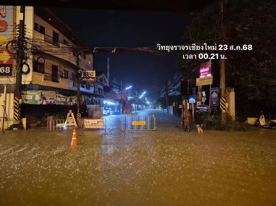 ភ្លៀងធ្លាក់ខ្លាំងបណ្តាលឱ្យមានទឹកជំនន់ភ្លាមៗនៅខេត្ត Chiang Mai កាលពីយប់ឈានចូលថ្ងៃទី២៣ ខែសីហា នៅក្នុងសង្កាត់ Chang Phueak និងសាកលវិទ្យាល័យ Chiang Mai។ ទឹកហូរហៀរប្រឡាយបានជន់លិចសហគមន៍មួយ បង្ខំឱ្យប្រជាពលរដ្ឋប្រញាប់រើរបស់របរដើម្បីរត់ទៅកាន់កន្លែងសុវត្ថិភាព។ ទឹកជំនន់ ក៏បានជន់លិចបណ្ណសារប្រវត្តិសាស្ត្រប្រជាជនភាគខាងជើងខេត្តបណ្តាលឱ្យខូចខាតយ៉ាងទូលំទូលាយនៅខាងក្នុងអាគារ។
