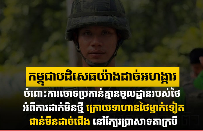 កម្ពុជាបដិសេធយ៉ាងដាច់អហង្ការ ចំពោះការចោទប្រកាន់គ្មានមូលដ្ឋានរបស់ថៃ អំពីការដាក់មីនថ្មី ក្រោយទាហានថៃម្នាក់ទៀតជាន់មីនដាច់ជើង នៅក្បែរប្រាសាទតាក្របី