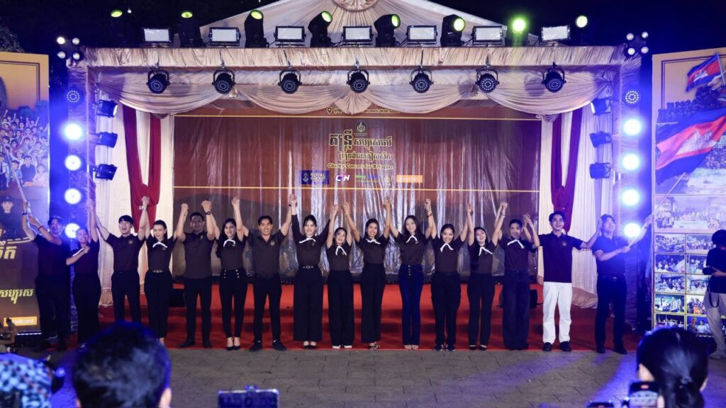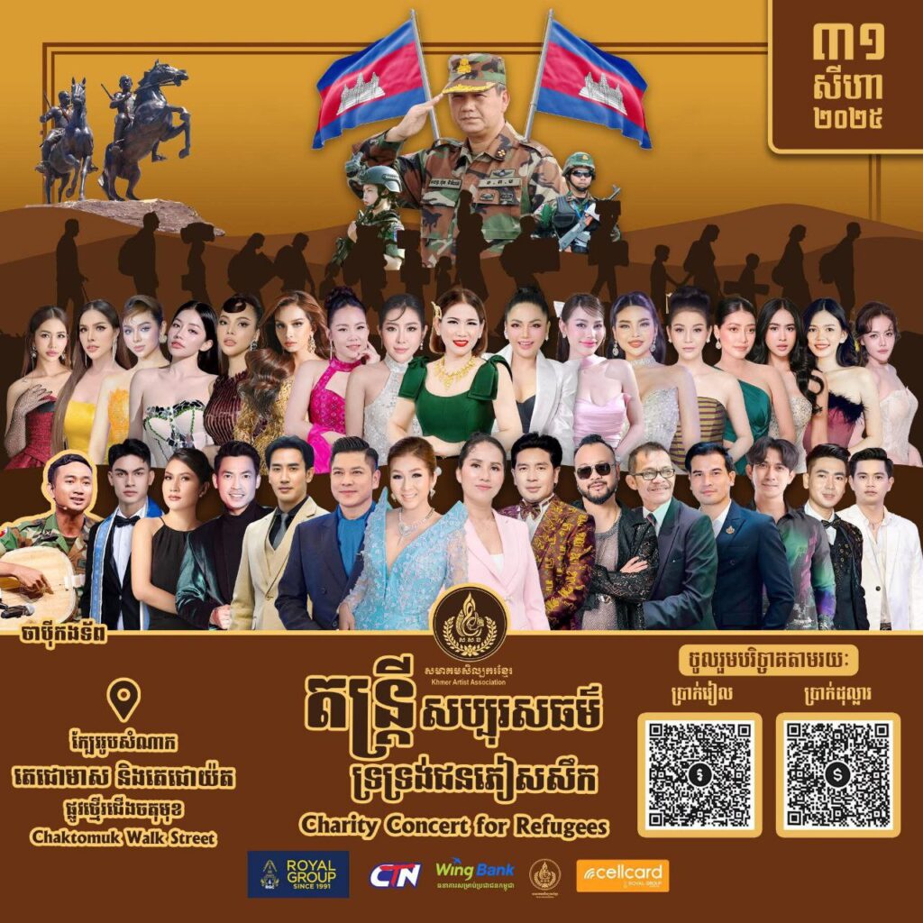 (ភ្នំពេញ)៖ លោកជំទាវអ្នកឧកញ៉ា ម៉ៅ ចំណាន គិតម៉េង ប្រធានសមាគមសិល្បករខ្មែរ បានដឹកនាំសិល្បករ-សិល្បការិនីល្បីៗរៀបចំកម្មវិធីតន្ត្រីសប្បុរសធម៌ ដើម្បីរួមគ្នាផ្តល់កម្លាំងចិត្តដល់វីរកងទ័ពជួរមុខ និងផ្តល់ភាពសប្បាយរីករាយដល់ភ្ញៀវជាតិ និងអន្តរជាតិ នៅផ្លូវថ្មើរជើងចតុមុខ(Walk Street) រាជធានីភ្នំពេញនារាត្រី ថ្ងៃទី៣០ និងទី៣១ ខែសីហា ឆ្នាំ២០២៥។