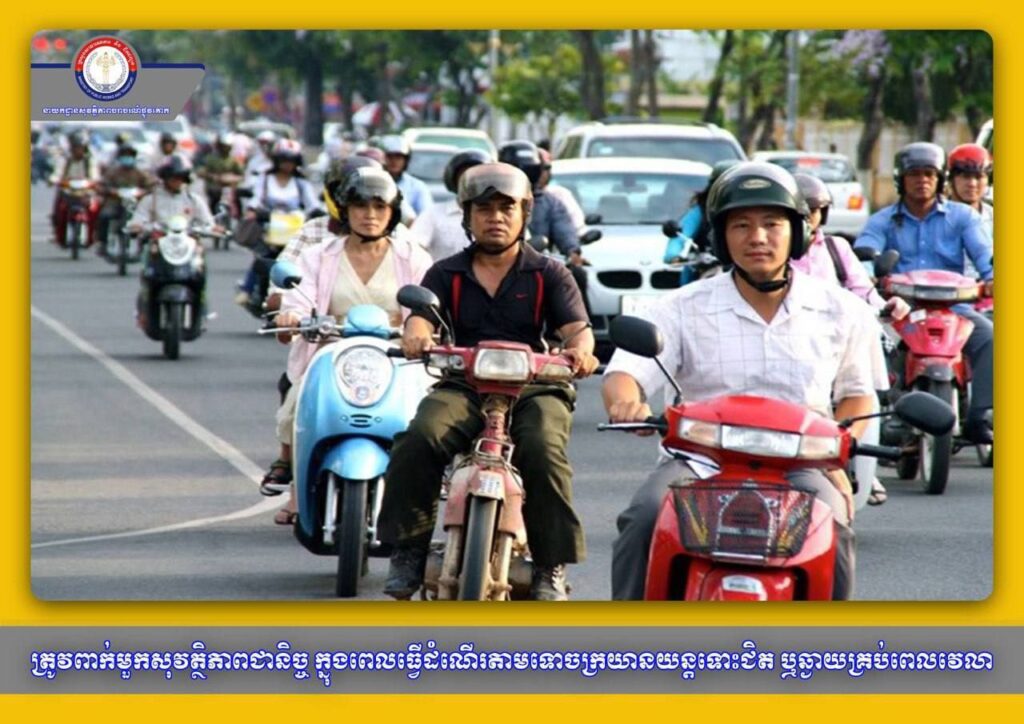*៦៖ ត្រូវពាក់មួកសុវត្ថិភាពជានិច្ច នៅពេលបើកបរទោចក្រយានយន្ត (ទាំងអ្នកបើកបរ និងអ្នករួមដំណើរ)