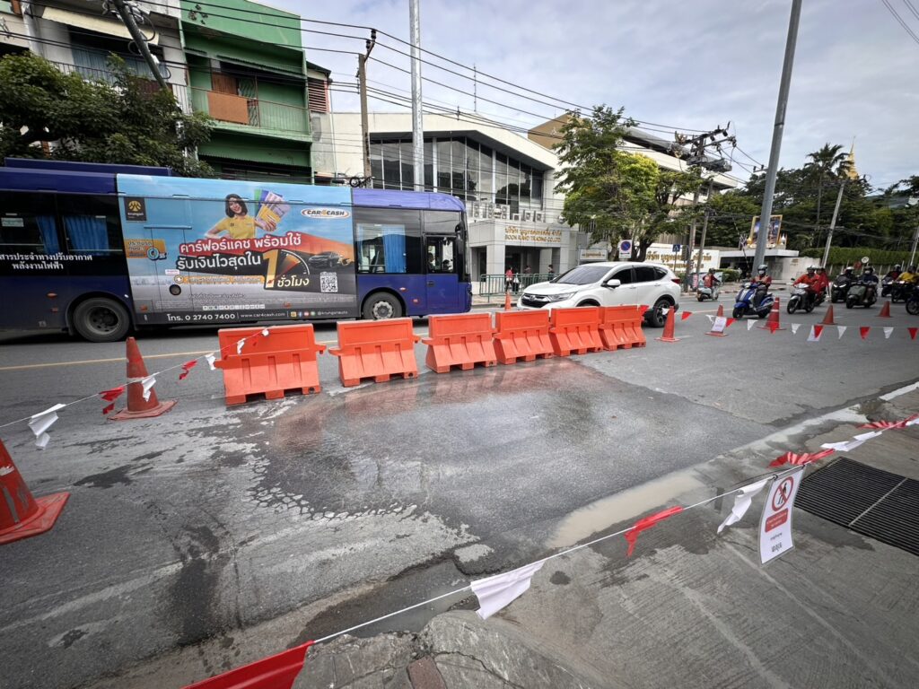 (បាងកក)៖ នាថ្ងៃព្រហស្បតិ៍ ទី២៥ ខែកញ្ញា អាជ្ញាធរនៅទីក្រុងបាងកកនៃប្រទេសថៃ បានប្រទះឃើញមានស្នាមប្រេះ ហើយថែមទាំងជ្រាបទឹកចេញមកខាងលើ នៅចំណុចផ្លូវថ្នល់មួយកន្លែងទៀត ក្រោយទើបមានករណីប្រាក់ស្រុតផ្លូវដ៏ធំមួយយ៉ាងភ្ញាក់ផ្អើល កាលពីមួយថ្ងៃមុន។ នេះបើតាមការចេញផ្សាយដោយ សារព័ត៌មានថៃ Khaosod។