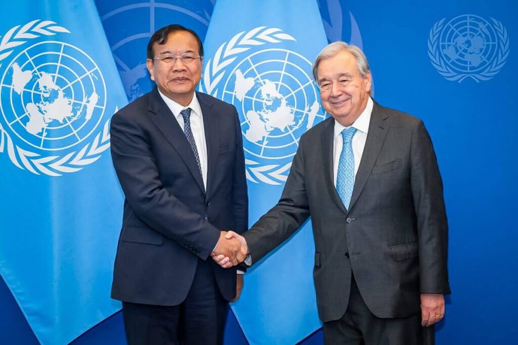 (អាមេរិក)៖ នៅរសៀលថ្ងៃទី២៦ ខែកញ្ញា ឆ្នាំ២០២៥ ឧបនាយករដ្ឋមន្ត្រី ប្រាក់ សុខុន រដ្ឋមន្ត្រីការបរទេស និងសហប្រតិបត្តិការអន្តរជាតិ បានជួបពិភាក្សាទ្វេភាគីជាមួយ លោក António Guterres អគ្គលេខាធិការអង្គការសហប្រជាជាតិ អំឡុងកិច្ចពិភាក្សាទូទៅនៃមហាសន្និបាតអង្គការសហប្រជាជាតិ លើកទី៨០ក្នុងទីក្រុងញូវយ៉ក សហរដ្ឋអាម៉េរិក។