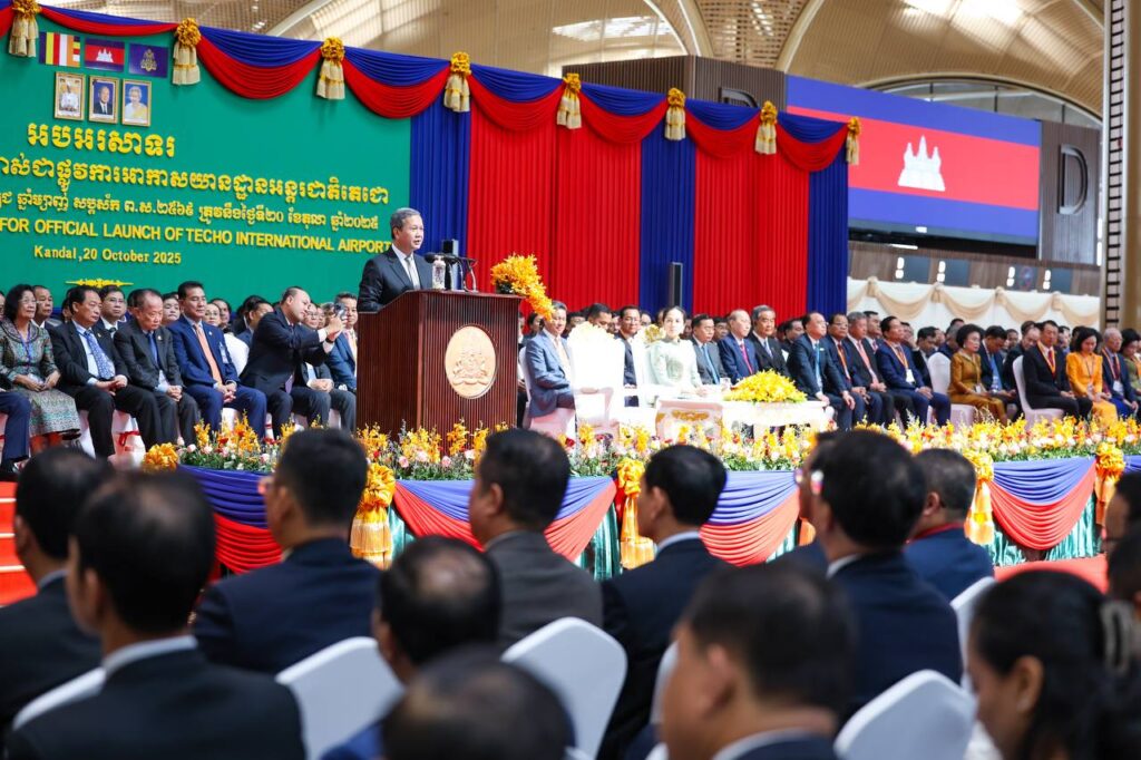 ការថ្លែងបញ្ជាក់ជាថ្មីរបស់ សម្តេចមហាបវរធិបតីនាយករដ្ឋមន្ត្រី ធ្វើឡើងក្នុងឱកាសអញ្ជើញសម្ពោធដាក់ឲ្យប្រើប្រាស់ជាផ្លូវការ អាកាសយានដ្ឋានអន្តរជាតិតេជោ (TIA) លំដាប់ថ្នាក់ 4F ដែលចំណាយថវិកាសាងសង់អស់ ២,៣០០លានដុល្លារសហអាមេរិក នៅព្រឹកថ្ងៃទី២០ ខែតុលា ឆ្នាំ២០២៥នេះ។