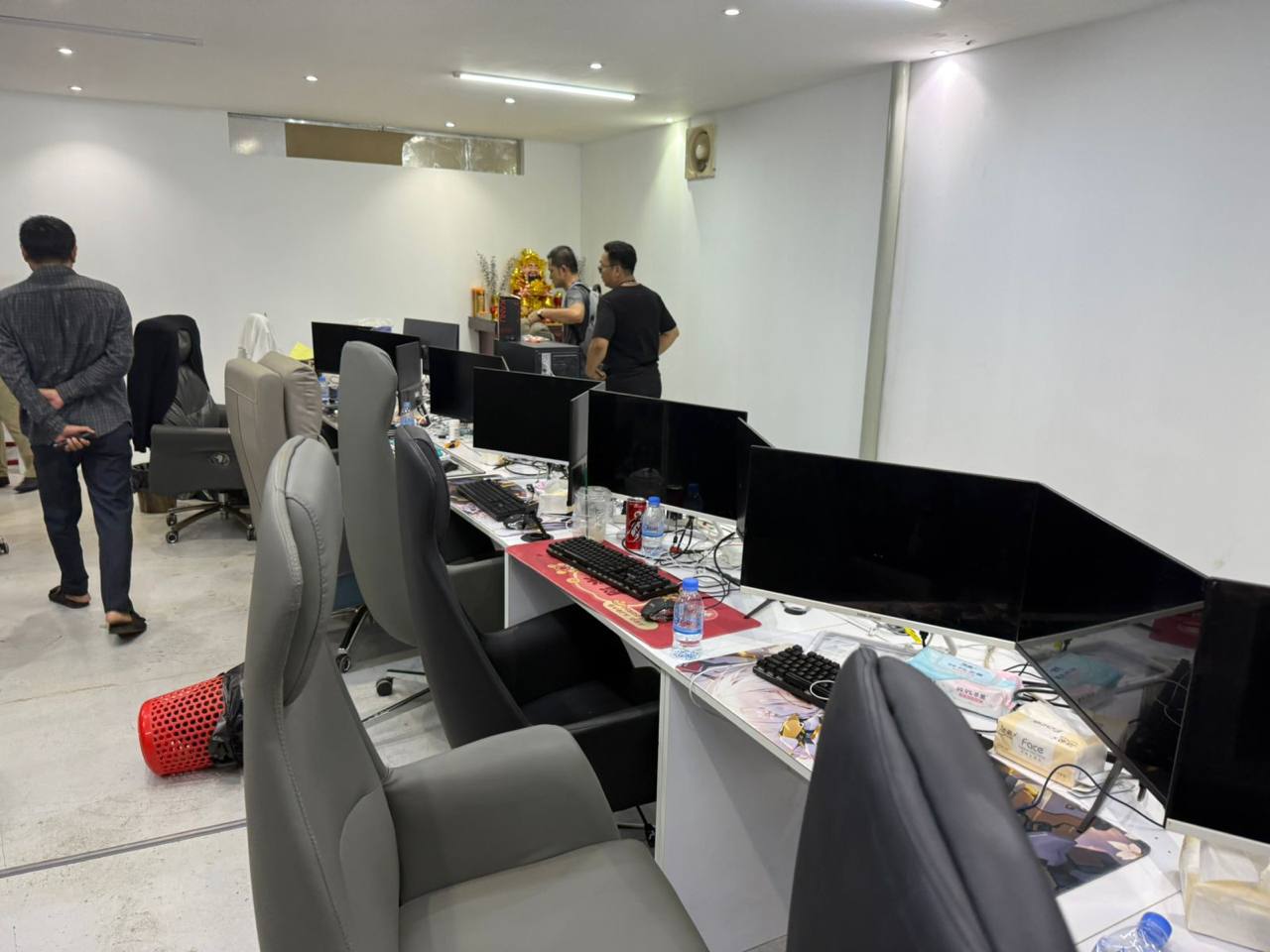 សូមបញ្ជាក់ថា ពេលចុះប្រតិបត្តិការបង្រ្កាបក្នុងទីតាំងនេះនាពេលកន្លងទៅថ្មីៗនេះ កម្លាំងសមត្ថកិច្ចចម្រុះរបស់កម្ពុជា បានឃាត់ខ្លួនជនបរទេស៨៦នាក់ ក្នុងនោះស្រី៥នាក់ រាប់បញ្ចូលជនជាតិកូរ៉េ៥៧នាក់ (ស្រី២នាក់) និងជនជាតិចិន២៩នាក់ (ស្រី៣នាក់)។ សម្ភាររួមមាន៖ កុំព្យូទ័រចំនួន ១២៦គ្រឿង និងទូរសព្ទដៃ ចំនួន ៣០គ្រឿង ត្រូវសមត្ថកិច្ចដកហូតផងដែរ។