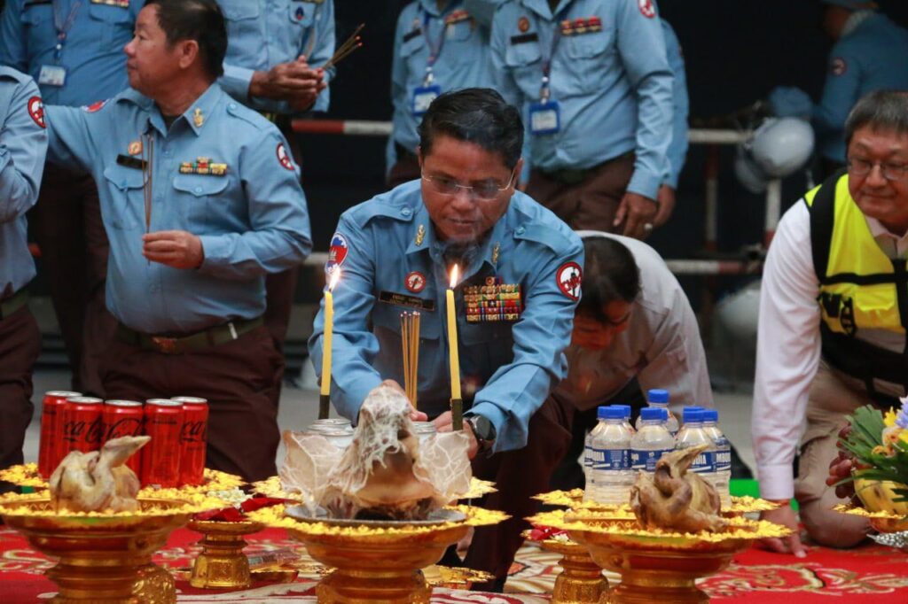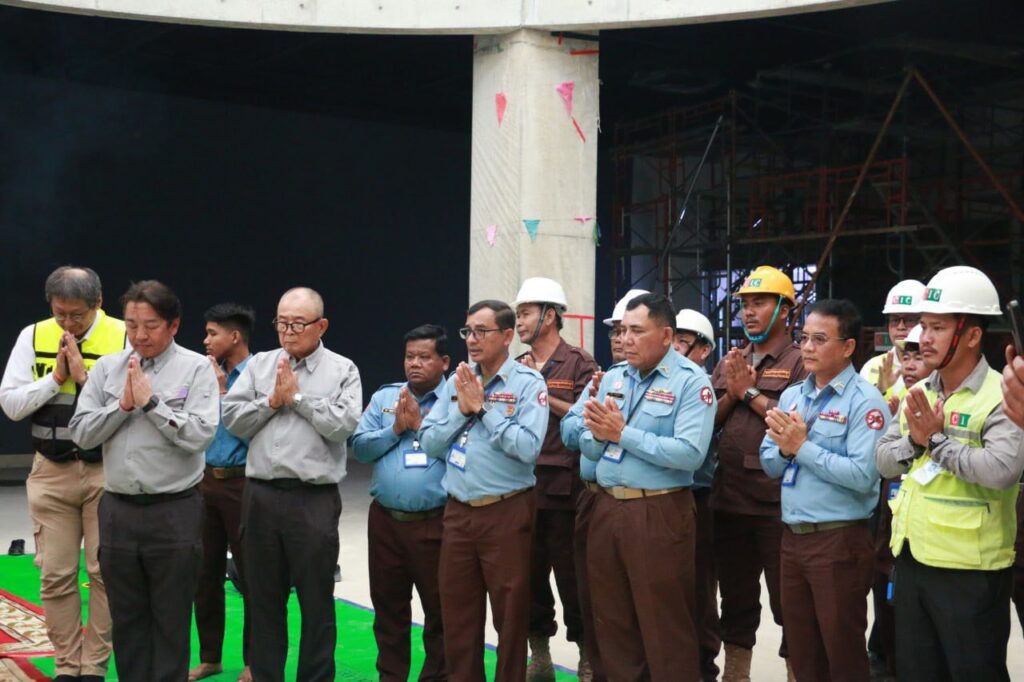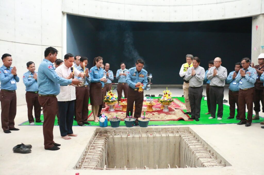 (សៀមរាប)៖ លោក ហេង រតនា ប្រតិភូរាជរដ្ឋាភិបាលទទួលបន្ទុកជាអគ្គនាយក CMAC និងក្រុមការងារក្រុមវិស្វករជប៉ុន នៃក្រុមហ៊ុន SATO KOGYO នៅថ្ងៃទី០១ ខែធ្នូ ឆ្នាំ២០២៥ បានរៀបចំពិធីបញ្ចប់ការងារចាក់ប៊េតង់ទាំងស្រុង សម្រាប់សំណង់អគាររាងគ្រាប់មីន PMN-2 នៅសារមន្ទីតេជោសន្តិភាព ស្ថិតនៅឃុំត្រពាំងធំ ស្រុកបាគង ខេត្តសៀមរាប។