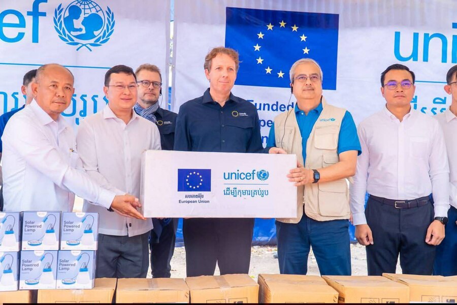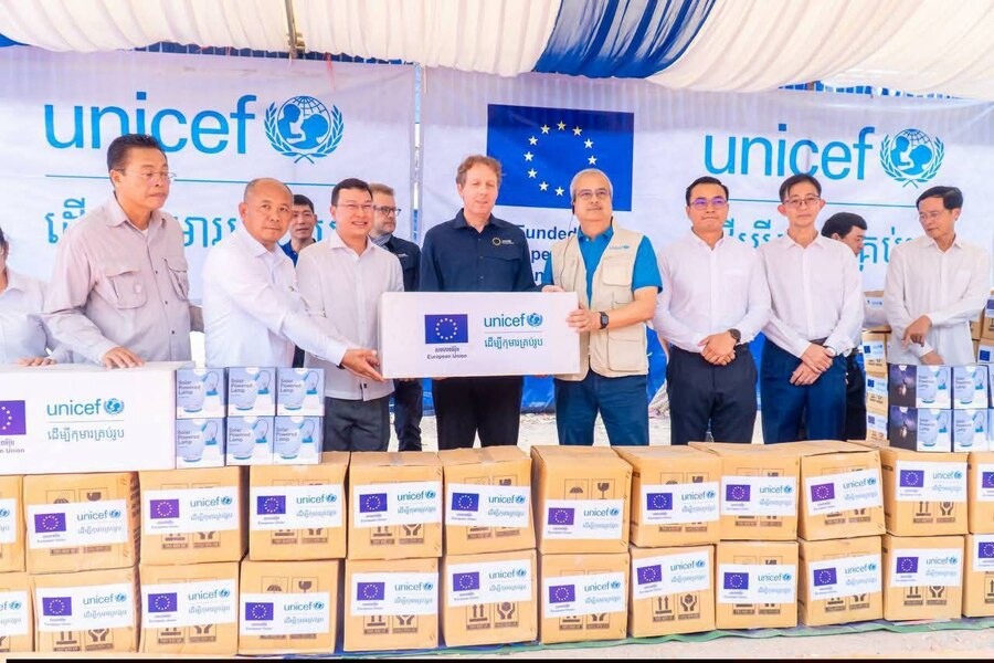 ក្នុងបរិបទដ៏លំបាកនេះ សហភាពអឺរ៉ុបតាមរយៈអង្គការ UNICEF បានផ្តល់នូវជំនួយសង្គ្រោះបន្ទាន់ រួមមាន សម្ភារប្រើប្រាស់ចាំបាច់មានដូចជា តង់ សម្ភារ ផ្សេងៗ អំពូលសូឡា និងសម្ភារកុមារ សម្រាប់តម្រូវការរស់នៅប្រចាំថ្ងៃក្នុងជម្រកបណ្តោះអាសន្ន។ គ្រឿងឧបភោគបរិភោគ ដើម្បីធានាបាននូវសន្តិសុខស្បៀងសម្រាប់គ្រួសាររងគ្រោះ។ ការគាំទ្រផ្នែកសុខុមាលភាព សំដៅលើកកម្ពស់អនាម័យ និងសុខភាពដល់កុមារ និងស្ត្រី។