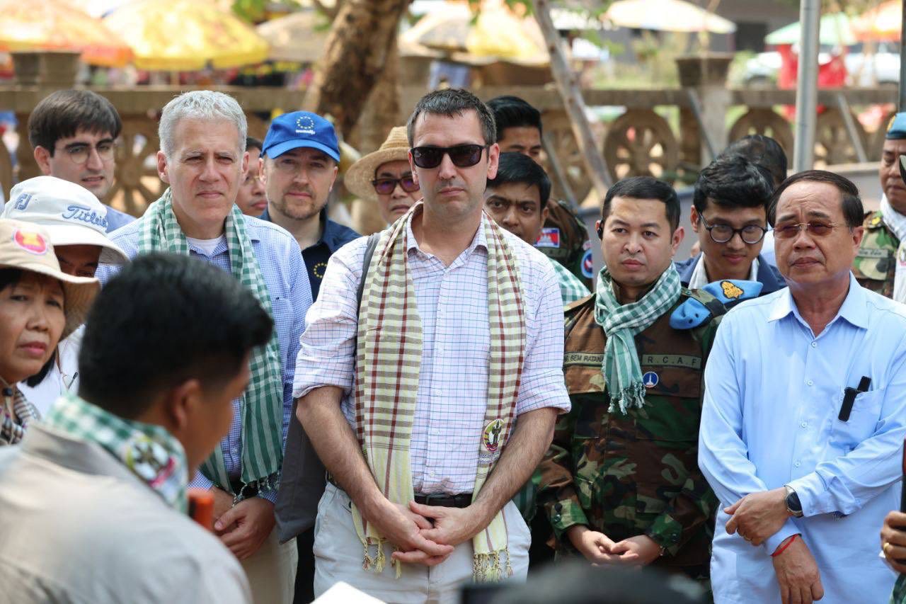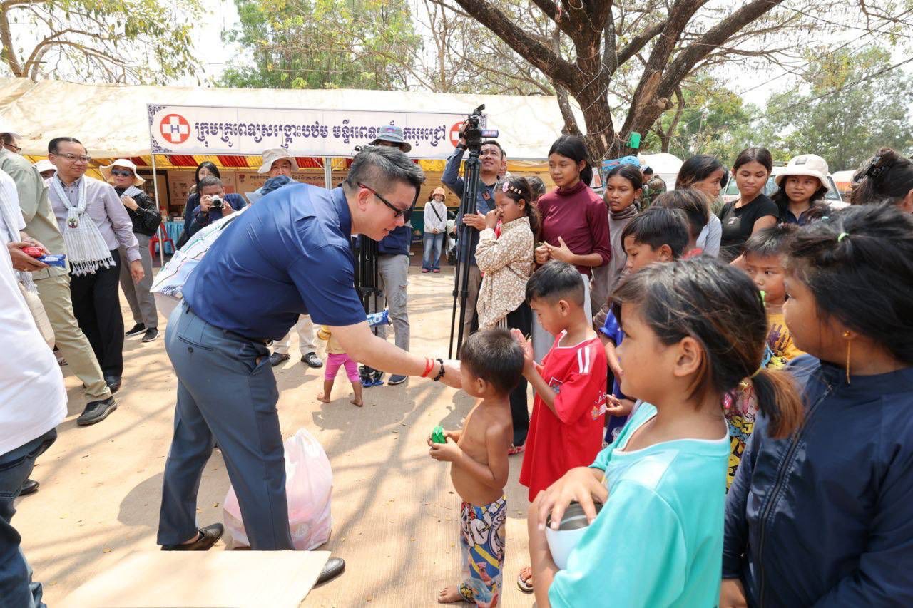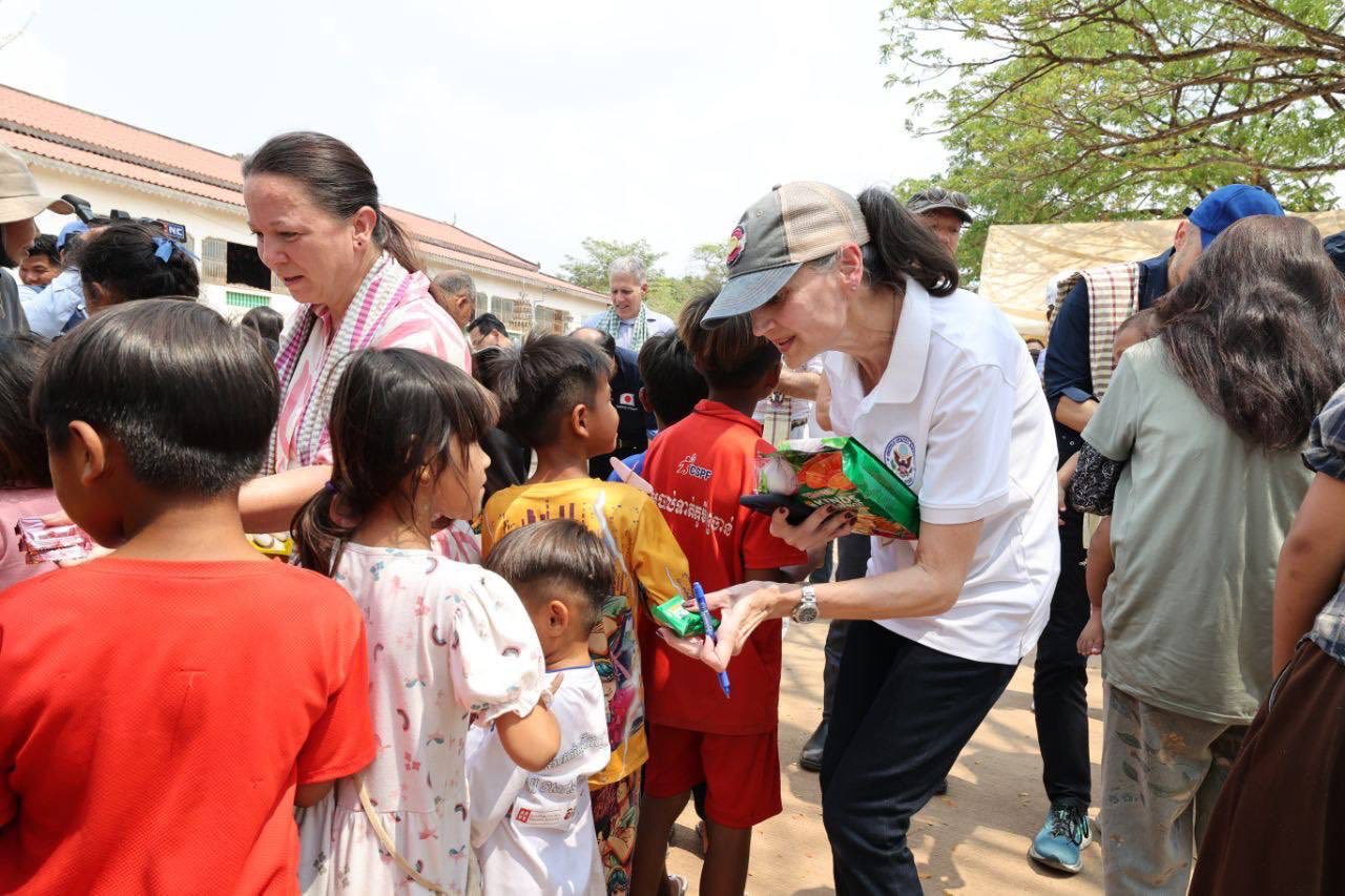 AKP បន្ទាយមានជ័យ ថ្ងៃទី២៣ ខែកុម្ភៈ ឆ្នាំ២០២៦—លោកជំទាវ អ៊ាត សោភា រដ្ឋមន្ត្រីស្តីទី ក្រសួងការបរទេស និងសហប្រតិបត្តិការអន្តរជាតិ អញ្ជើញដឹកនាំបណ្តាអង្គទូត និងទីភ្នាក់ងារបរទេស ប្រចាំនៅព្រះរាជាណាចក្រកម្ពុជា ចុះទស្សនកិច្ច និងពិនិត្យមើលស្ថានភាពជនភៀសសឹកនៅមណ្ឌលសុវត្ថិភាពវត្តចាន់ស៊ីសាមគ្គីរតនារាម ស្ថិតក្នុងឃុំកូប ស្រុកអូរជ្រៅ ខេត្តបន្ទាយមានជ័យ នាព្រឹកថ្ងៃទី២៣ ខែកុម្ភៈ ឆ្នាំ២០២៦។