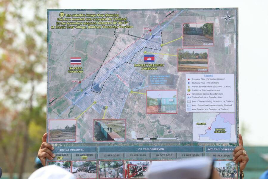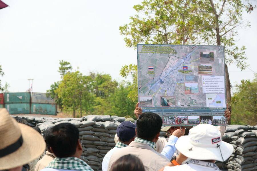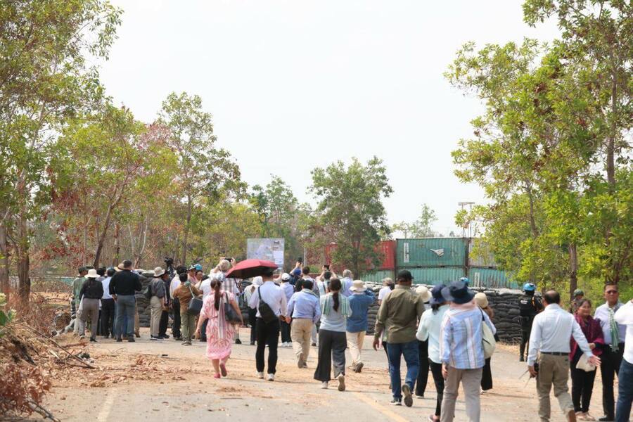 យោងតាមការចុះផ្សាយរបស់ ក្រសួងព័ត៌មាន បានឱ្យដឹងថា បណ្តាអង្គទូត និងទីភ្នាក់ងារបរទេស ប្រចាំនៅព្រះរាជាណាចក្រកម្ពុជា អញ្ជើញចុះពិនិត្យមើលការរំលោភបំពានរបស់កងកម្លាំងថៃ តាមរយៈការរាយបន្លាលួស និងដាក់ទូកុងតឺន័រ នៅភូមិជោគជ័យ និងភូមិព្រៃចាន់ ស្ថិតក្នុងឃុំអូរបីជាន់ ស្រុកអូរជ្រៅ ខេត្តបន្ទាយមានជ័យ ក្រោមការដឹកនាំរបស់ លោកជំទាវ អ៊ាត សោភា រដ្ឋមន្ត្រីស្តីទី ក្រសួងការបរទេស និងសហប្រតិបត្តិការអន្តរជាតិ និងអមដំណើរដោយថ្នាក់ដឹកនាំរដ្ឋបាលខេត្តបន្ទាយមានជ័យ នាព្រឹកថ្ងៃទី២៣ ខែកុម្ភៈ ឆ្នាំ២០២៦។