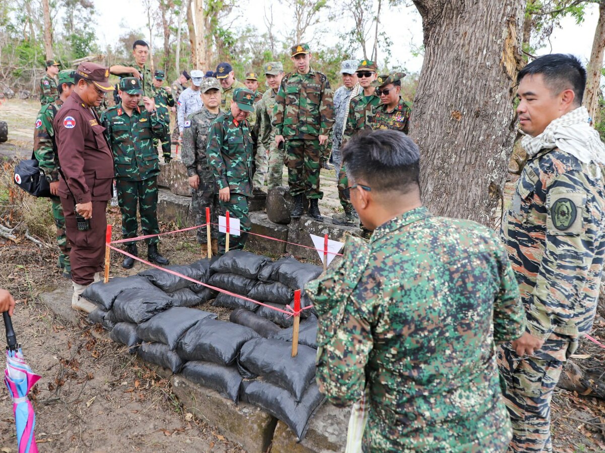 គណៈប្រតិភូអនុព័ន្ធយោធាបរទេស ប្រចាំកម្ពុជាចុះពិនិត្យជាក់ស្តែងនូវគ្រាប់សំណល់យុទ្ធភណ្ឌមិនទាន់ផ្ទុះ ដែលបានបន្សល់ពីសកម្មភាពវាយប្រហាររបស់យោធាឈ្លានពានថៃ