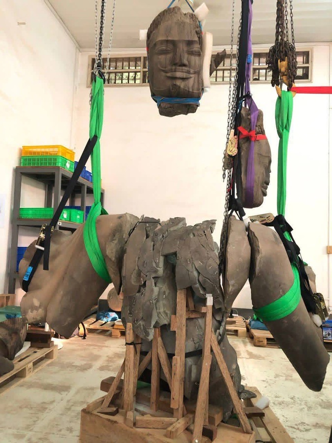 ប្រតិមាព្រះឥសូរដ៏ធំមួយនេះ ត្រូវប្រើពេលជួសជុលអស់រយៈពេលជាង ៥ឆ្នាំ ចាប់ពីឆ្នាំ២០២០ ដល់ឆ្នាំ២០២៦ ក្រោមកិច្ចសហការរវាងអាជ្ញាធរជាតិព្រះវិហារ និងសាលាបារាំងចុងបូព៌ា និងមានការគាំទ្រដោយសម្ព័ន្ធភាពបេតិកភណ្ឌ។ នេះជាវត្ថុបុរាណដែលមានកម្ពស់ ៥ម៉ែត្រ មានព្រះភក្ត្រ៥ ព្រះហស្ថ១០ និងទម្ងន់ប្រមាណ ៧តោន។ ប្រិតិមានេះបានរលំបាក់ក្នុងសតវត្សទី១៤ មានសភាពបែកបាក់ចំនួនជាង ១ម៉ឺនបំណែក និងត្រូវបានចោរចូលលួចក្នុងសម័យសង្គ្រាមស៊ីវិល៕