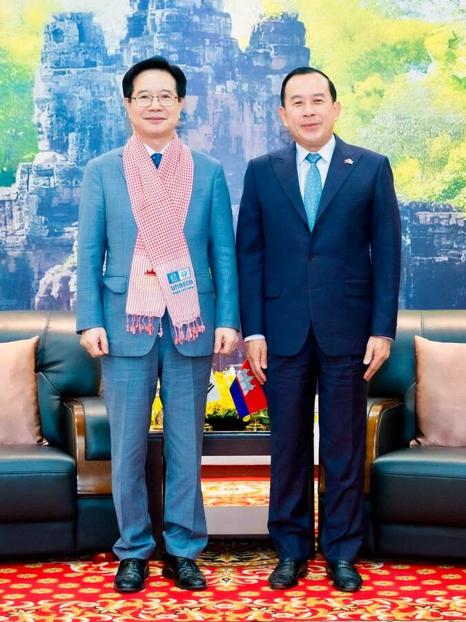 (ភ្នំពេញ ថ្ងៃទី២០ ខែមីនា ឆ្នាំ២០២៦)៖ យោងតាមការចុះផ្សាយរបស់ ក្រសួងព័ត៌មាន បានឱ្យដឹងថា ឯកឧត្តម ហួត ហាក់ រដ្ឋមន្ត្រីក្រសួងទេសចរណ៍ បានអនុញ្ញាតជូនឯកឧត្តម Kim Chang Yong ឯកអគ្គរដ្ឋទូតវិសាមញ្ញ និងពេញសមត្ថភាពនៃសាធារណរដ្ឋកូរ៉េប្រចាំកម្ពុជា និងសហការី ចូលជួបសម្តែងការគួរសម និងពិភាក្សាការងារលើការពង្រឹង និងពង្រីកកិច្ចសហប្រតិបត្តិការក្នុងវិស័យទេសចរណ៍នៃប្រទេសទាំងពីរឱ្យកាន់តែស៊ីជម្រៅបន្ថែមទៀត នៅទីស្តីការក្រសួងទេសចរណ៍។