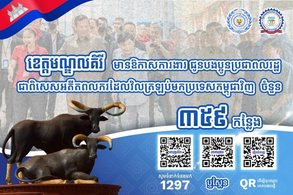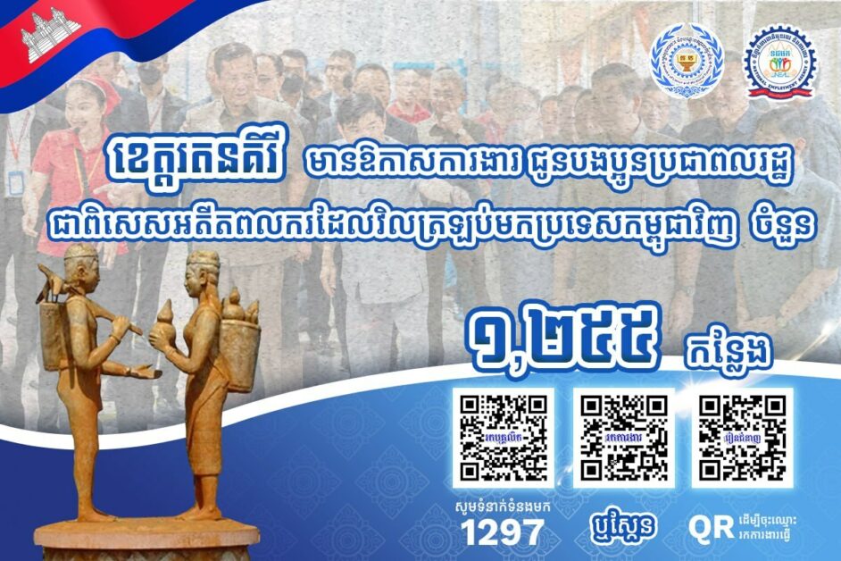 ក្រសួងការងារ៖ ខេត្ត ៤ នៅភូមិភាគឦសាន្តមានឱកាសការងារជិត ៣ពាន់កន្លែង កំពុងរង់ចាំអតីតពលករត្រឡប់មកពីថៃ និងអ្នកកំពុងស្វែងរកការងារធ្វើ