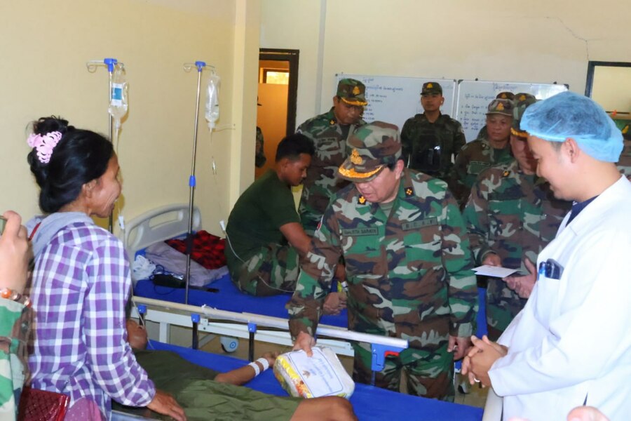 (ឧត្តរមានជ័យ) ឯកឧត្តមនាយឧត្តមសេនីយ៍ ឥត សារ៉ាត់ អគ្គមេបញ្ជាការរង នាយសេនាធិការចម្រុះ នៃកងយោធខេមរភូមិន្ទ តំណាងដ៏ខ្ពង់ខ្ពស់ ឯកឧត្តមនាយឧត្តមសេនីយ៍ ទៀ សីហា ឧបនាយករដ្ឋមន្ត្រី រដ្ឋមន្ត្រីក្រសួងការពារជាតិ បានអញ្ជើញចុះសួរសុខទុក្ខ និងជូនពរជ័យ សិរីសួស្តីដល់យោធិនដែលកំពុងបំពេញបេសកកម្មដ៏ឧត្តុង្គឧត្តមក្នុងការការពារបូរណភាពទឹកដី និងកំពុងសម្រាកព្យាបាលជំងឺ នៅសមរភូមិមុខតាមបណ្តោយព្រំដែនកម្ពុជា-ថៃ នៅគិលានដ្ឋាន ទិសទី២ និងទិសទី១ របស់យោធភូមិភាគទី៤ ក្នុងភូមិសាស្រ្តខេត្តឧត្តរមានជ័យ នាឱកាសបុណ្យចូលឆ្នាំថ្មី ឆ្នាំមមី អដ្ឋស័ក ពុទ្ធសករាជ ២៥៧០ ដែលនឹងឈានមកដល់នៅពេលខាងមុខ កាលពីថ្ងៃទី៣ ខែមេសា ឆ្នាំ២០២៦។