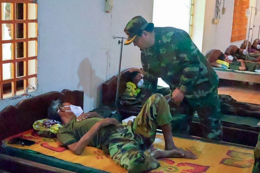 នាយឧត្តមសេនីយ៍ ឥត សារ៉ាត់ អញ្ជើញចុះសួរសុខទុក្ខ និងជូនពរជ័យ សិរីសួស្តីដល់យោធិនដែលកំពុងបំពេញបេសកកម្មការពារបូរណភាពទឹកដី និងកំពុងសម្រាកព្យាបាលជំងឺនៅគិលានដ្ឋាន ទិសទី២ និងទិសទី១