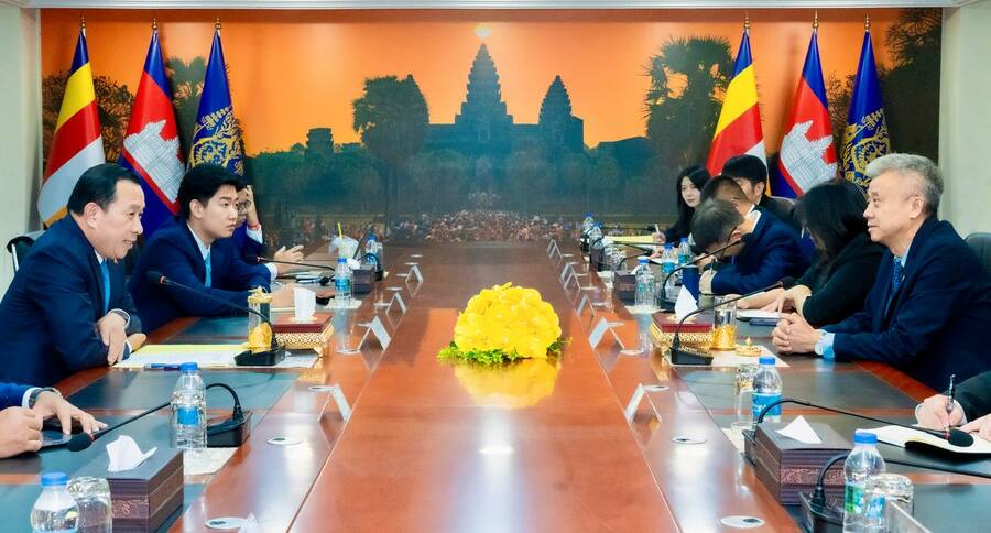 រាជធានីភ្នំពេញ៖ នាថ្ងៃទី៤ ខែមេសា ឆ្នាំ២០២៦ ឯកឧត្តម ហួត ហាក់ រដ្ឋមន្ត្រីក្រសួងទេសចរណ៍ បានទទួលជួបពិភាក្សាការងារជាមួយលោក Lu Wei ប្រធានក្រុមប្រឹក្សាភិបាលក្រុមហ៊ុន Angkor International Airport Investment (Cambodia) Co., Ltd. (AIAI) ដើម្បីពិនិត្យលើវឌ្ឍនភាពនៃគម្រោងវិនិយោគទេសចរណ៍ខ្នាតធំ និងការអភិវឌ្ឍផលិតផលទេសចរណ៍ថ្មីៗនៅជុំវិញតំបន់អាកាសយានដ្ឋានអន្តរជាតិសៀមរាប។